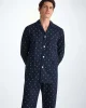 The timeless design features a simple paisley motif inspired by the traditional woodblock printing style. Made with a single breast pocket, classic flat collar, button-through top, adjustable two-button elasticated waist and complementary navy piping, they’ll guarantee you drift off peacefully.