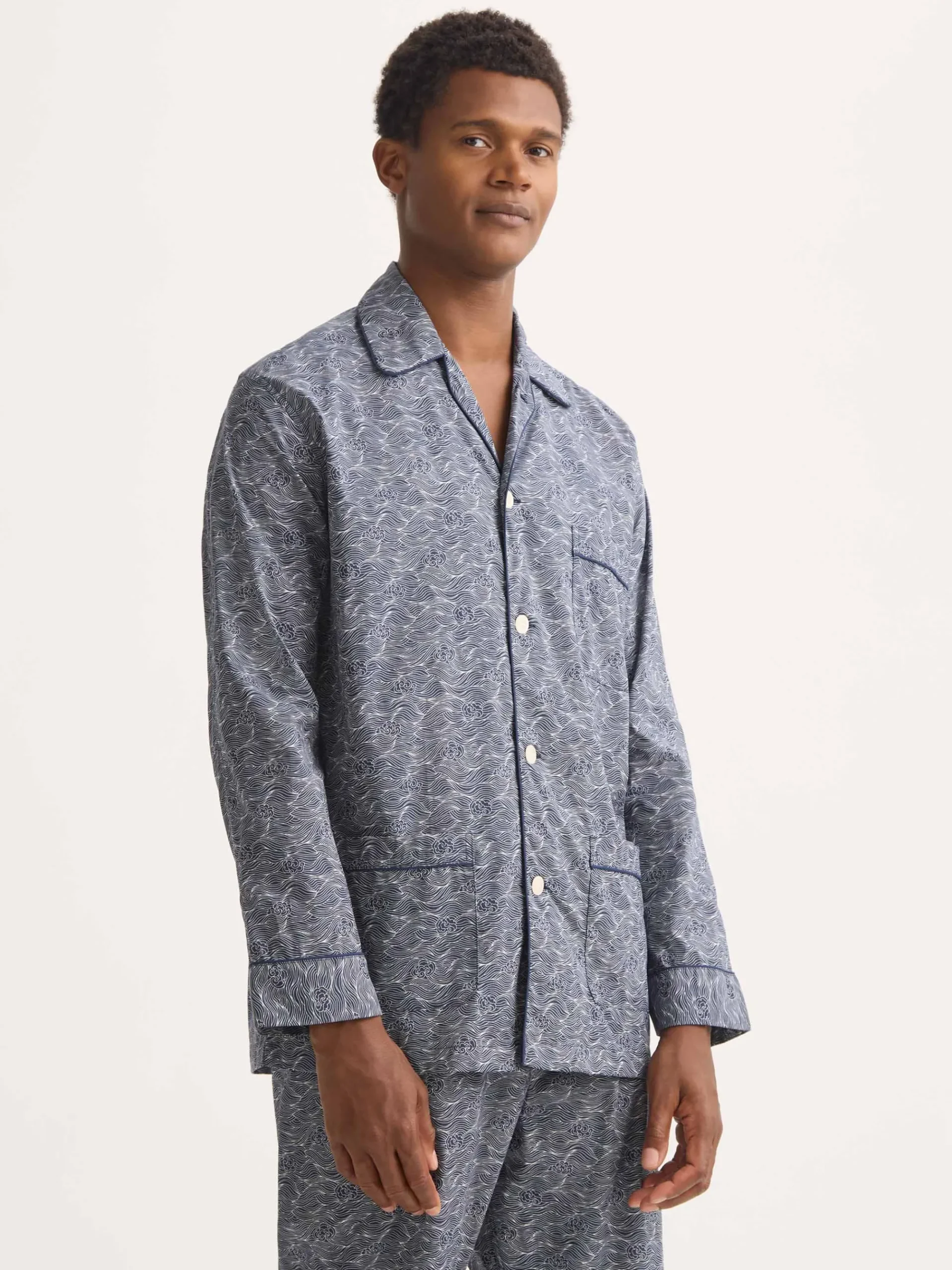 Designed in ultra-fine cotton batiste, these men’s classic fit pyjamas in a navy blue Night Sky print offer the ideal balance of comfort, breathability and timeless style. Lightweight and supremely soft, they are crafted to keep you comfortable throughout the night, whatever the season.