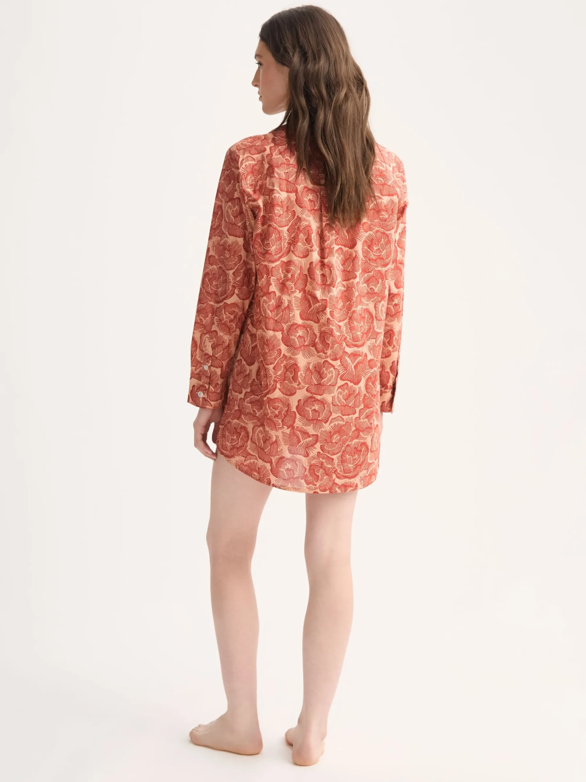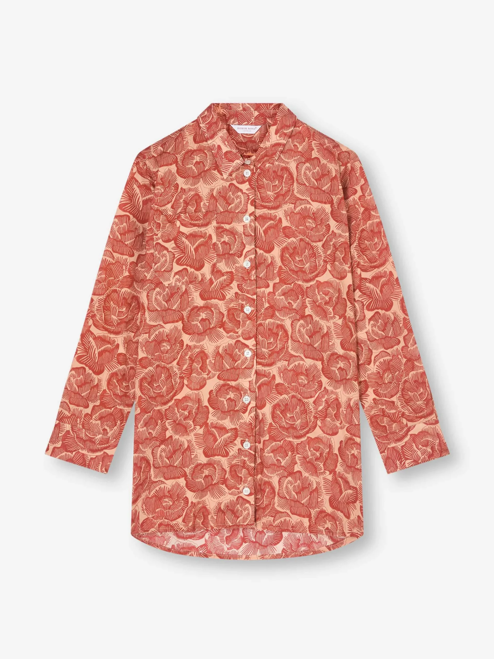 Inspired by the rose—an enduring Derek Rose symbol—this women’s nightshirt features a hand-drawn floral motif digitally reimagined in rustic red and peach tones. The two-tone design preserves the texture of the original artwork while playing with negative space, giving it a refined yet modern look.