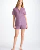Cut with a flattering but relaxed shape, our women’s shortie pyjamas feature a short sleeve jacket top with a mitred corner chest pocket. The shorts have an elasticated and drawstring waist for practicality. The higher waist on the shorts creates a more natural fit and improved comfort, and the most important addition? Pockets!