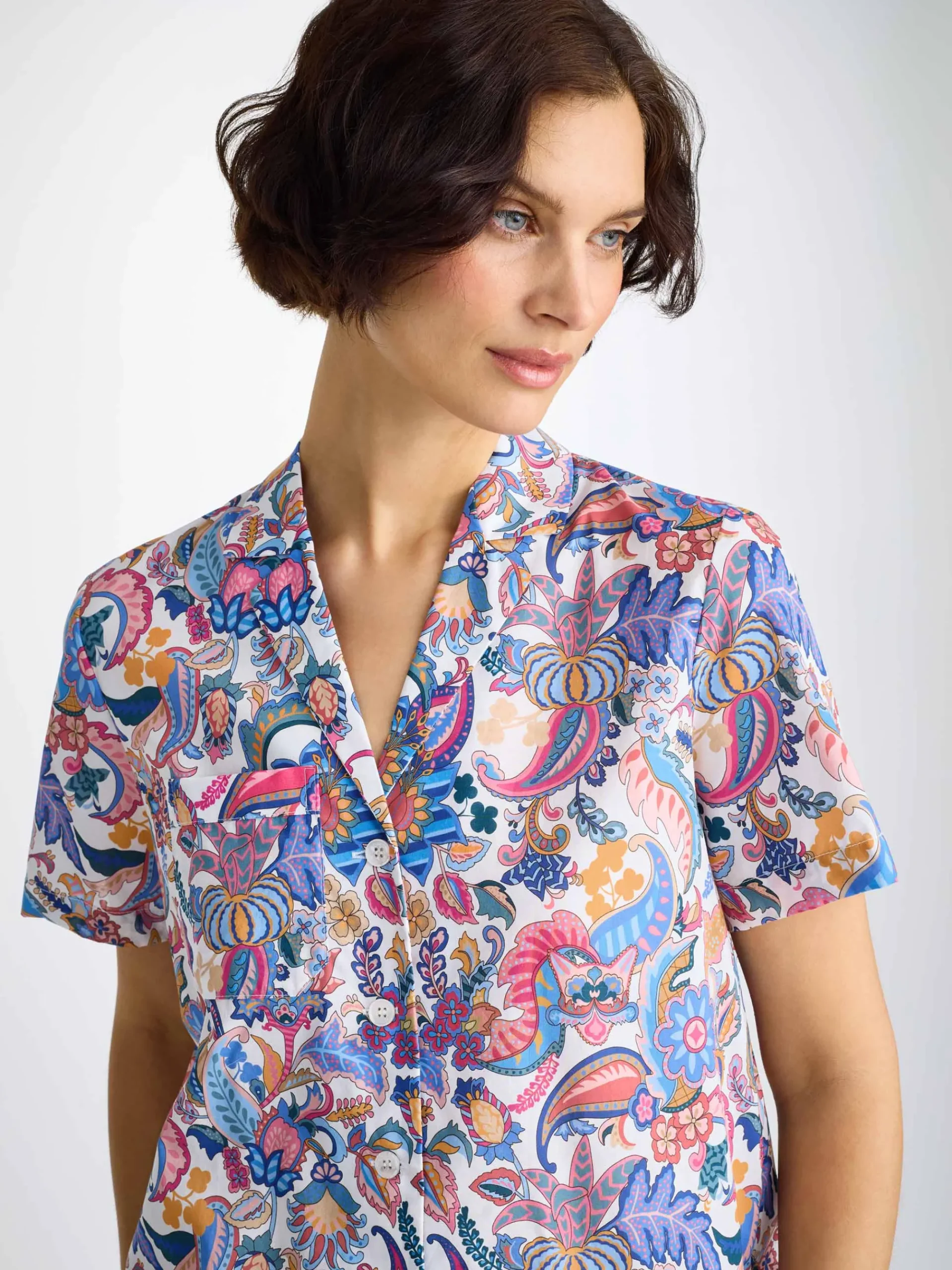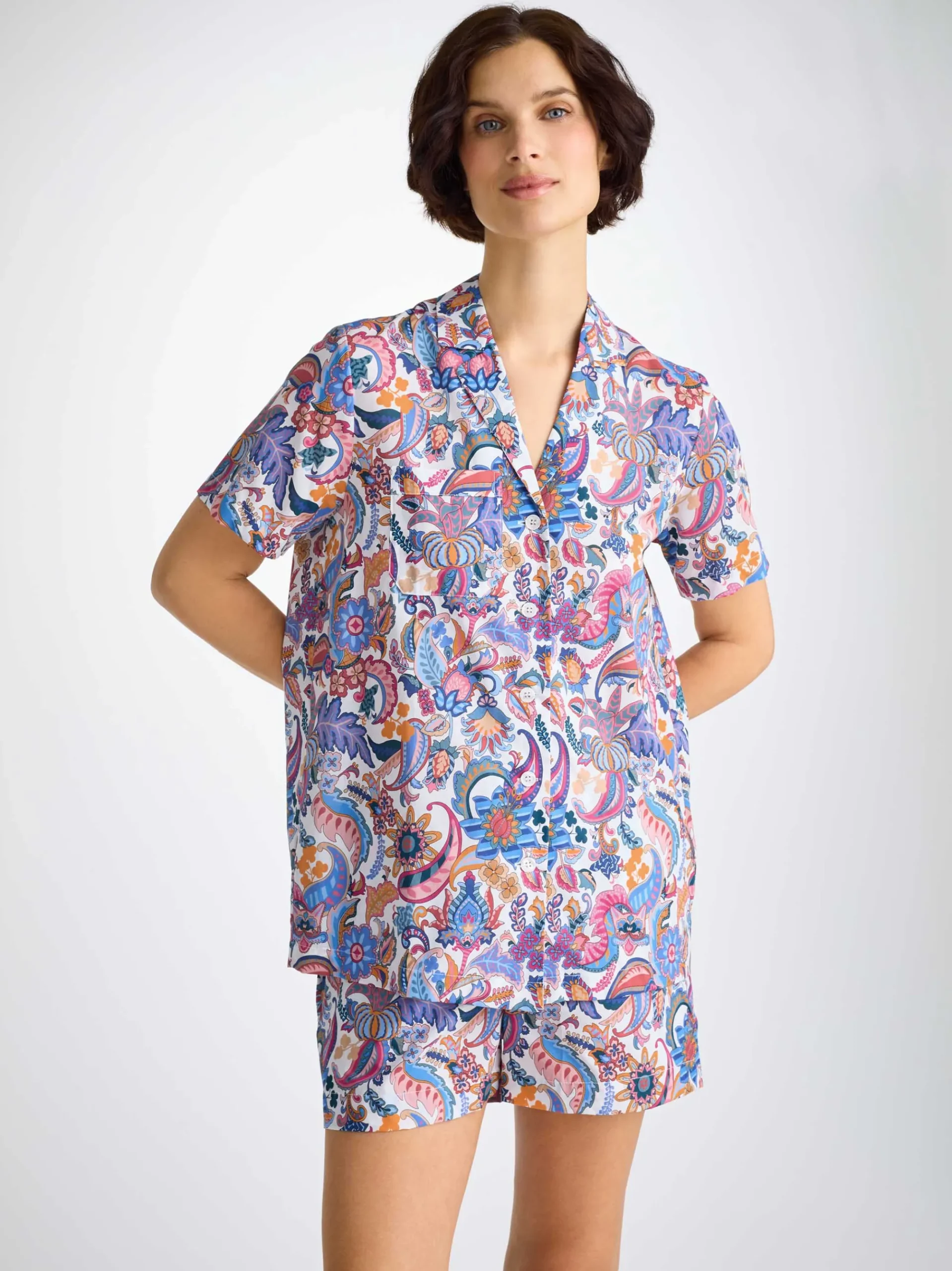 Cut with a flattering but relaxed shape, our women’s shortie pyjamas feature a short sleeve jacket top with a mitred corner chest pocket. The shorts have an elasticated and drawstring waist for practicality. The higher waist on the shorts creates a more natural fit and improved comfort, and the most important addition? Pockets!