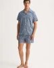 The short-sleeved pyjama top features a classic collar and a single breast pocket, while the matching shorts are finished with an adjustable two-button waistband and elasticated sides for ease of movement and overnight comfort.