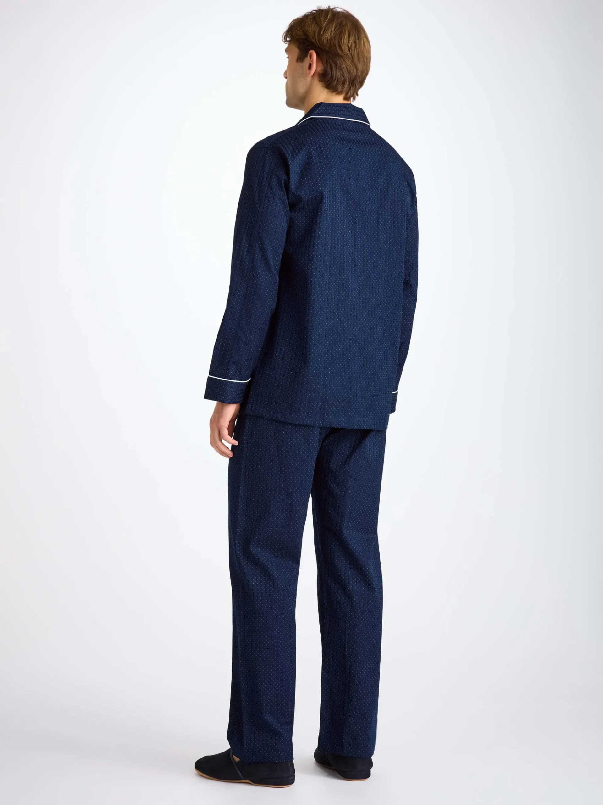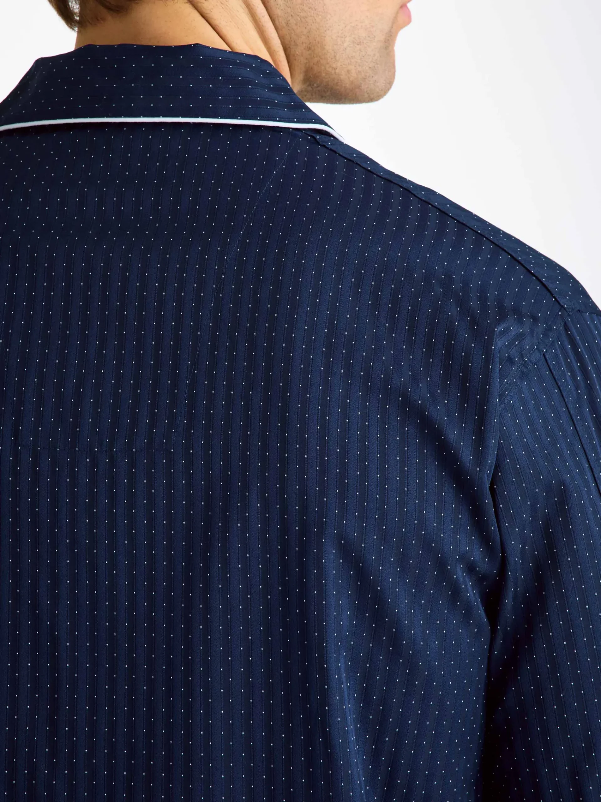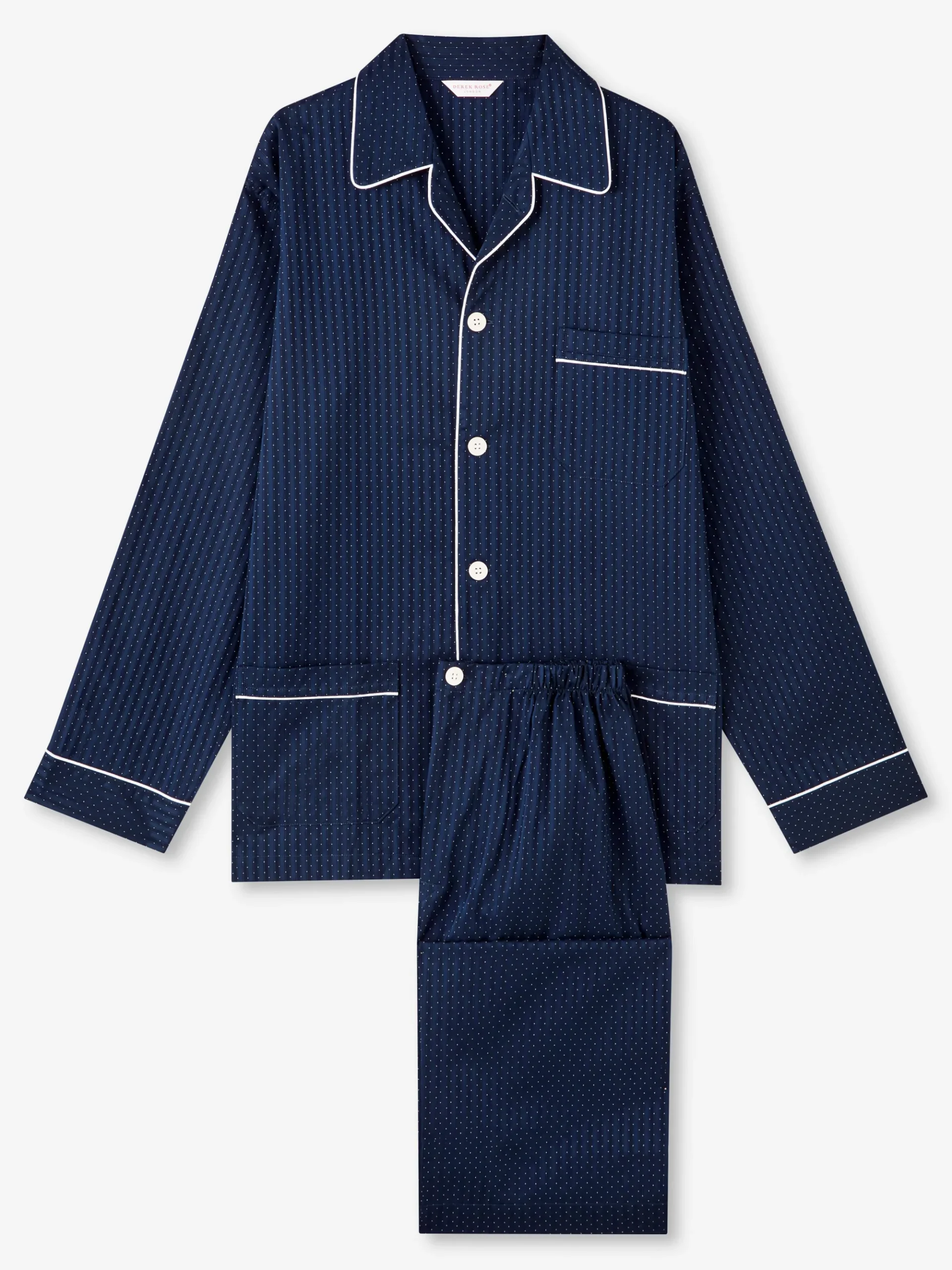 Featuring a three pocket pyjama top, classic collar, piped jacket and adjustable two-button waistband with open fly. Elasticated sides on the trousers mean the front and back are flat for your comfort.