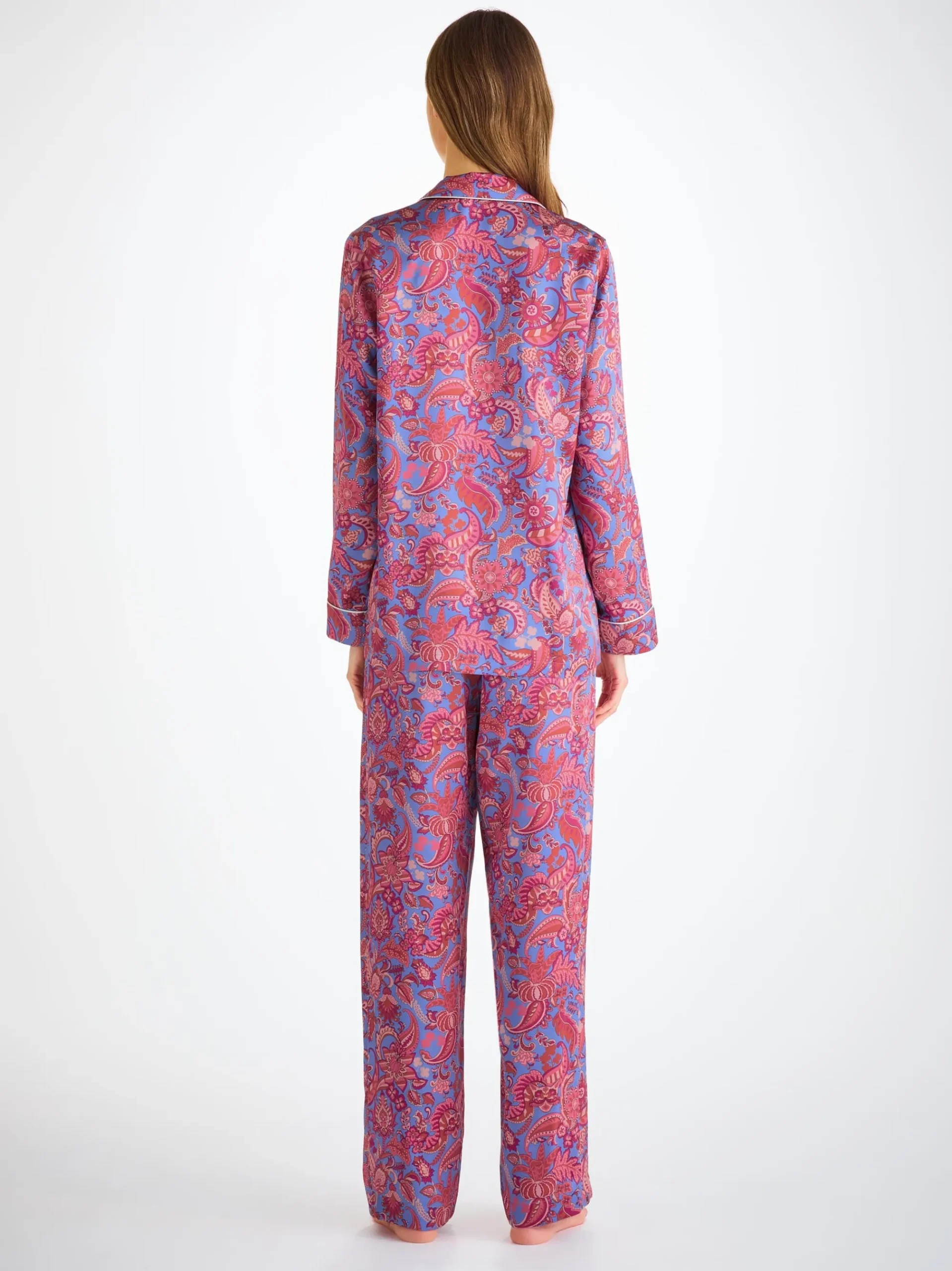 Produced in extremely limited quantities and the result of hours of loving craftwork by our skilled seamstresses in our Cheshire, England silk studio, this luxury amethyst purple pyjama set is delicately crafted to ensure we maintain the supremely soft and smooth satin finish.