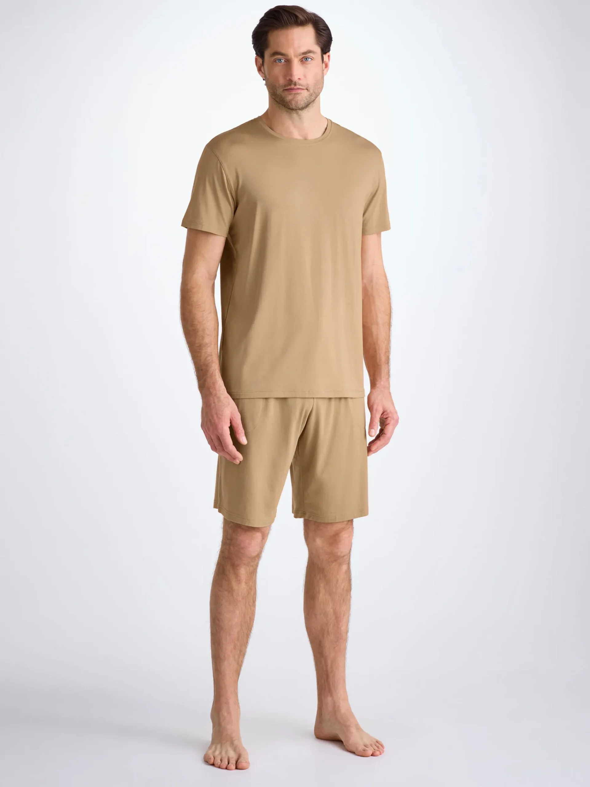 Featuring a combined elastic and tie waistband, our Basel camel jersey lounge shorts also feature two front side pockets and a rear back pocket to keep your phone and essentials close while you’re lounging. Both comfortable and stylish, we’ve elevated this loungewear short into a luxury essential for the modern man.