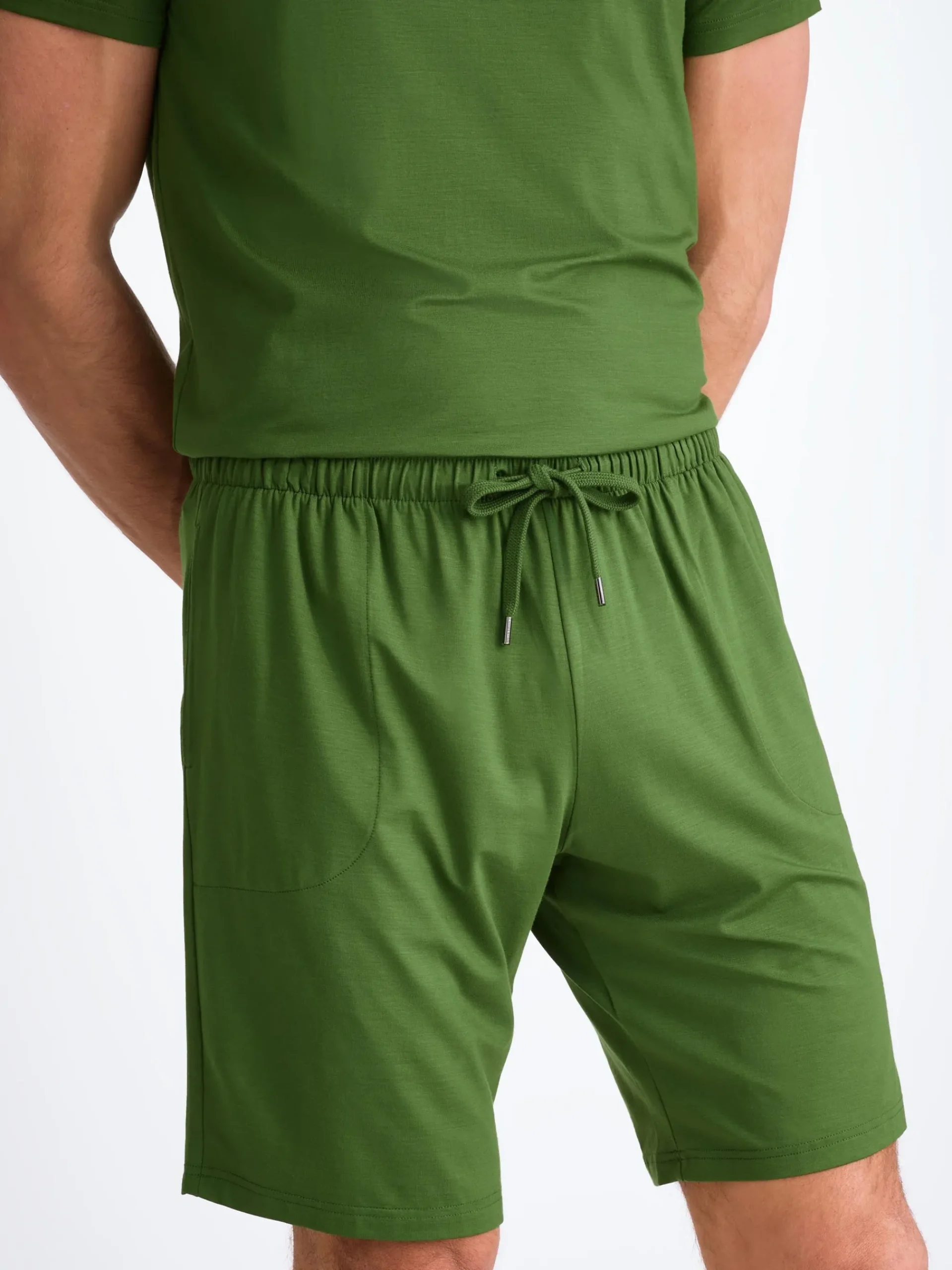 Featuring a combined elastic and tie waistband, our Basel leaf green jersey lounge shorts also feature two front side pockets and a rear back pocket to keep your phone and essentials close while you’re lounging. Both comfortable and stylish, we’ve elevated this loungewear short into a luxury essential for the modern man.