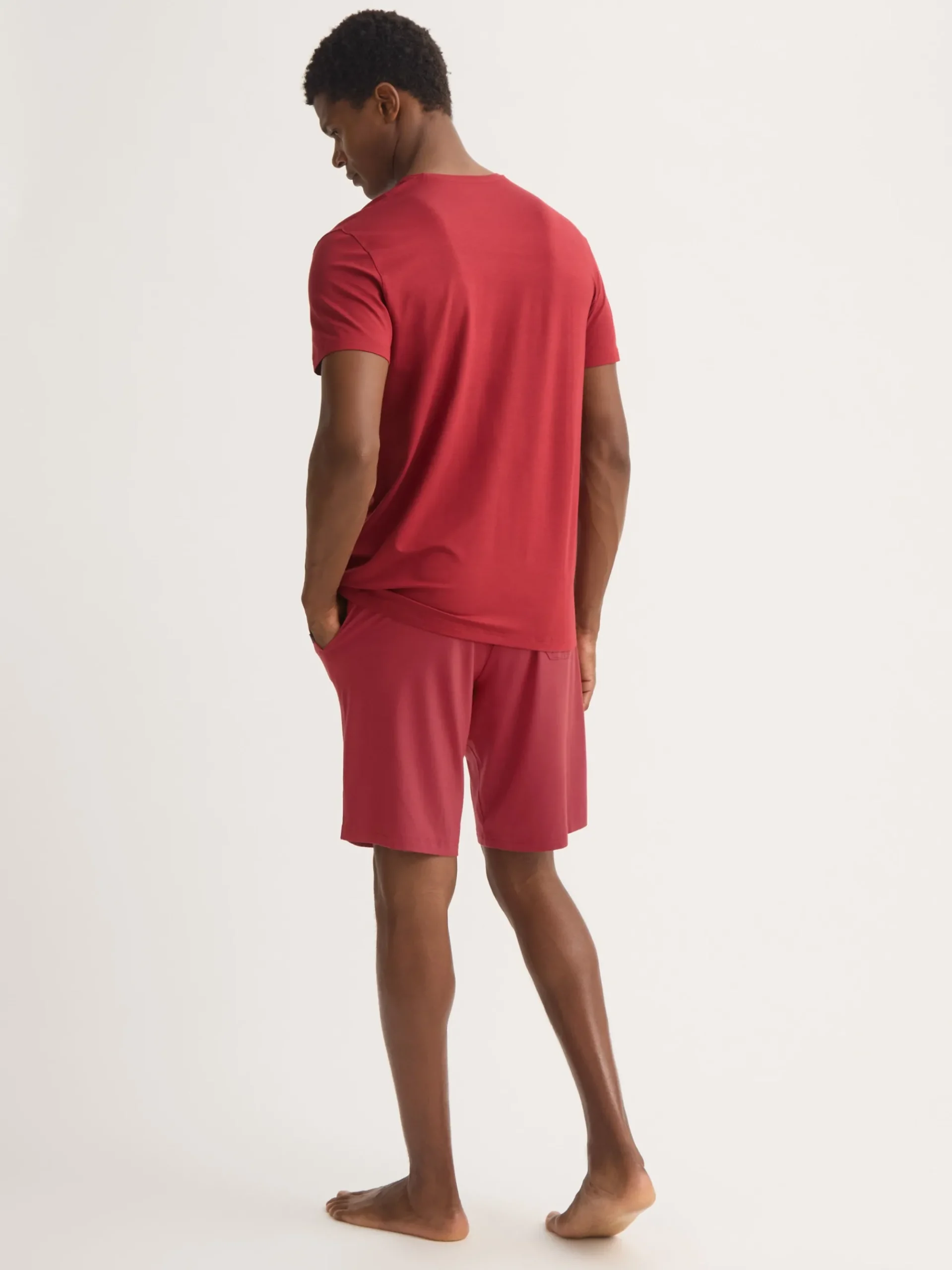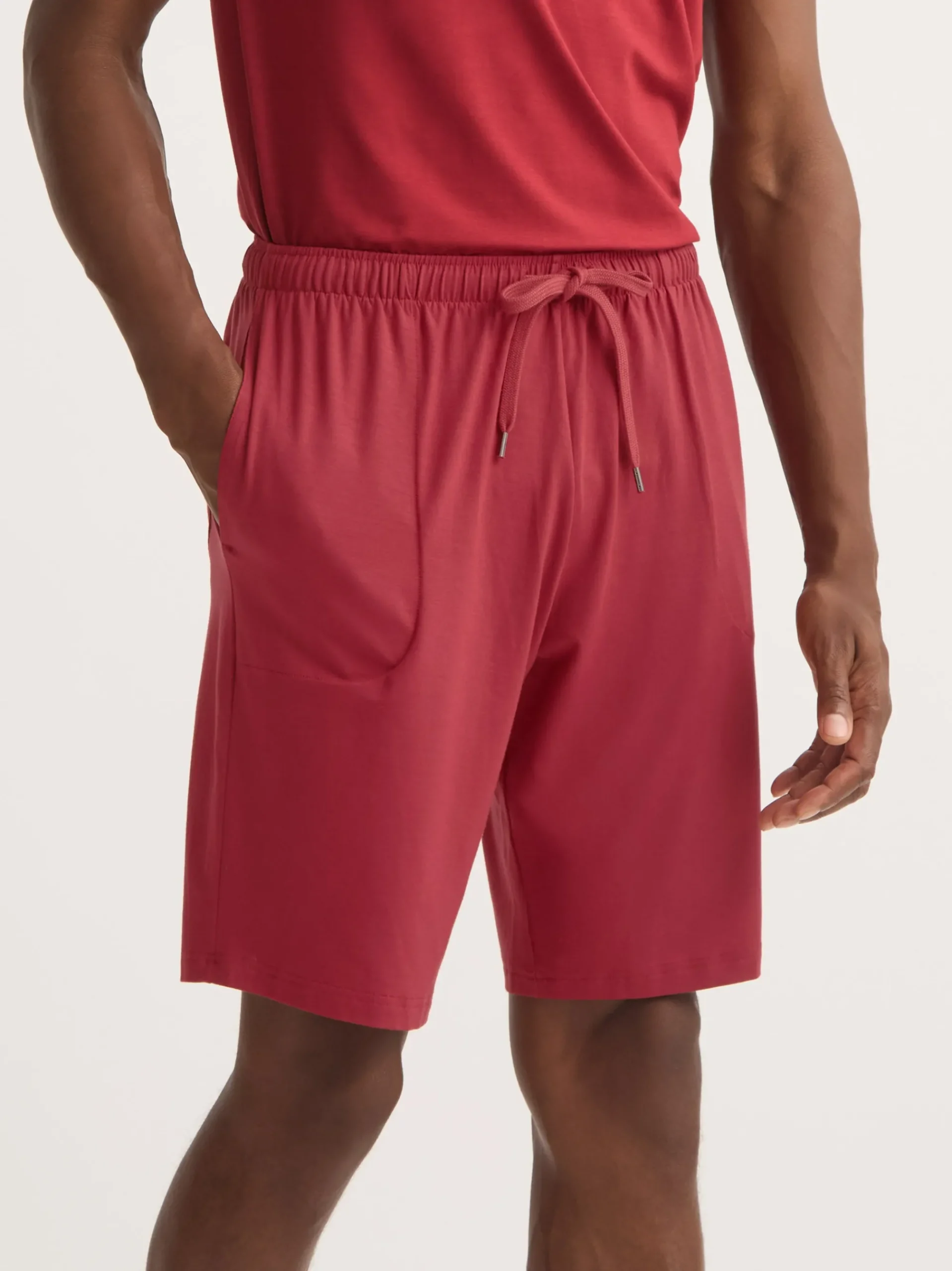 Featuring a combined elastic and tie waistband, our rustic red men’s lounge shorts also feature two front side pockets and a rear back pocket to keep your phone and essentials close while you’re lounging. Both comfortable and stylish, we’ve elevated this loungewear short into a luxury essential for the modern man.
