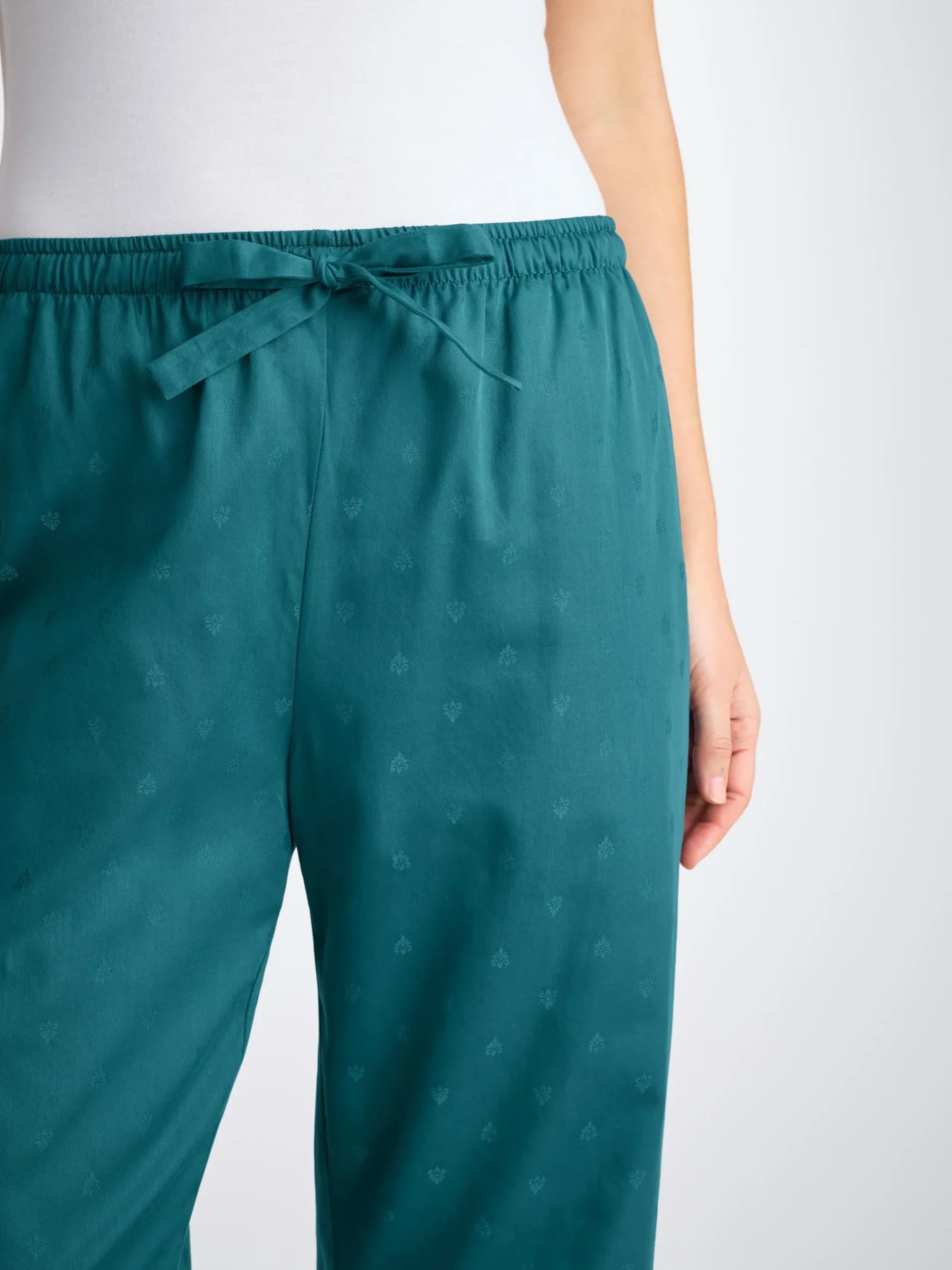Our jungle green lounge trousers are designed with a relaxed and comfortable shape. Featuring a combined elastic and self-fabric tied waist for a comfortable fit and two inset side pockets to help keep your phone and other items close while lounging, you’ll definitely feel as great as you’ll look. Designed with a subtle jacquard paisley motif design.