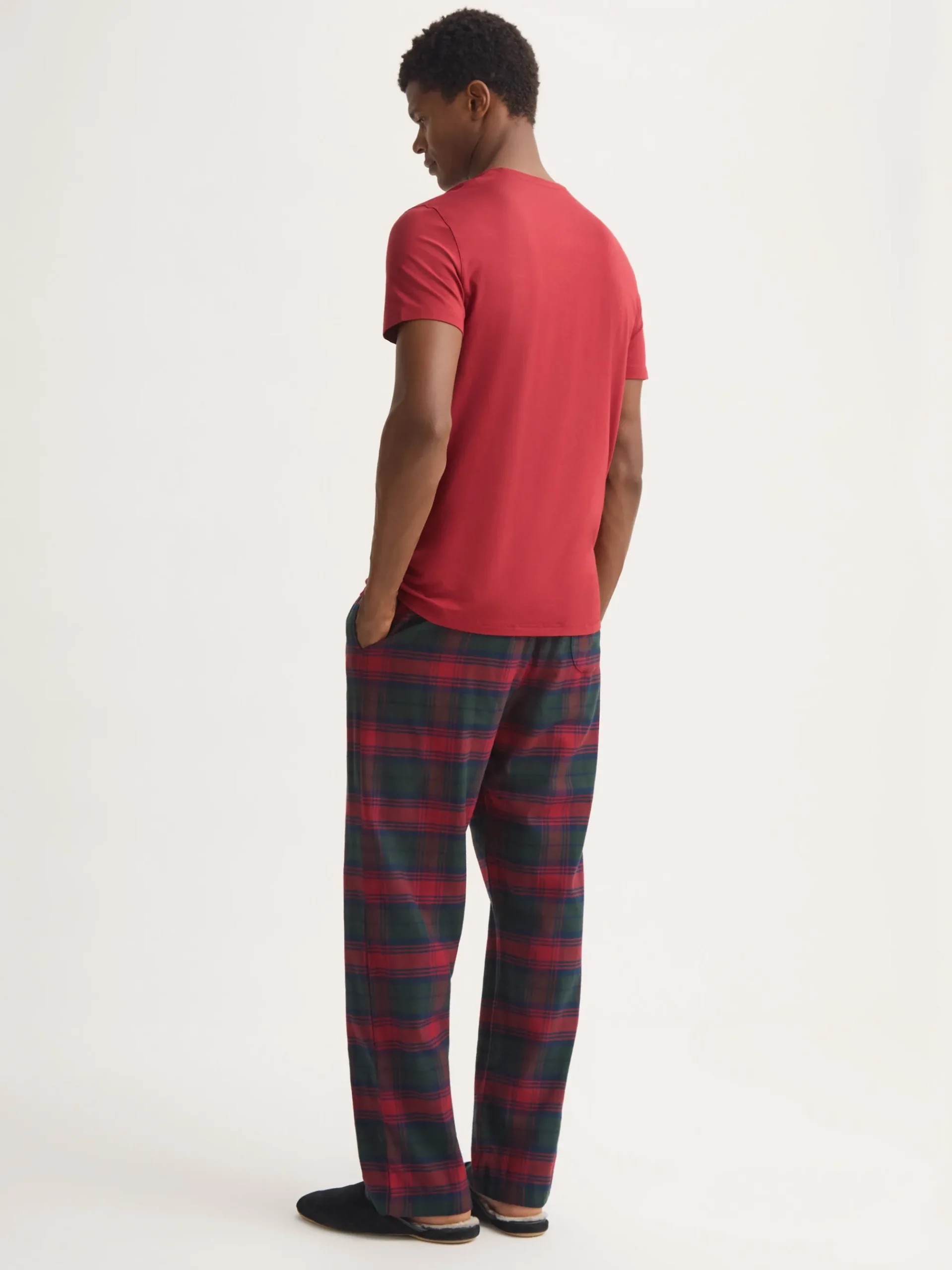Designed and cut for a generous and relaxed fit, our men’s Kelburn lounge trousers feature a combined elastic and self-fabric tied waist for a comfortable fit with two inset side pockets and a rear patch pocket to help keep your phone and other items close while you’re lounging. A concealed magnetic fly also ensures practicality is not lost.
