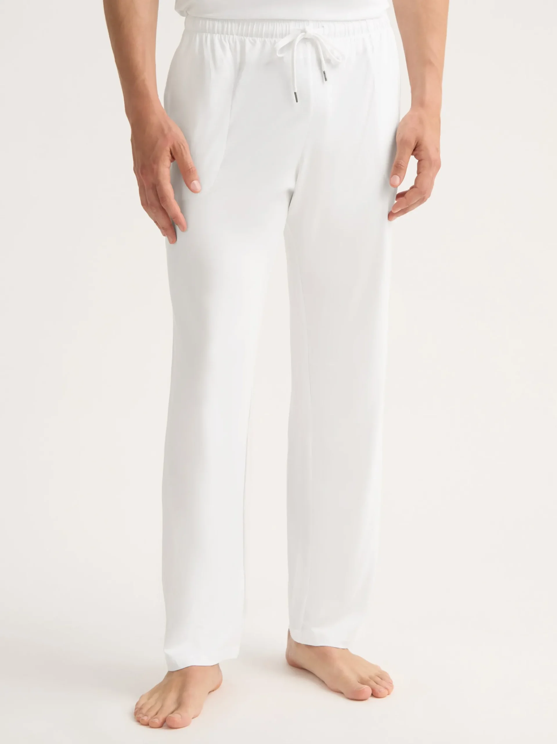 The ideal loungewear companion, the white trouser fastens with an elastic and tie waistband for a winning combination of comfort and flattering fit.