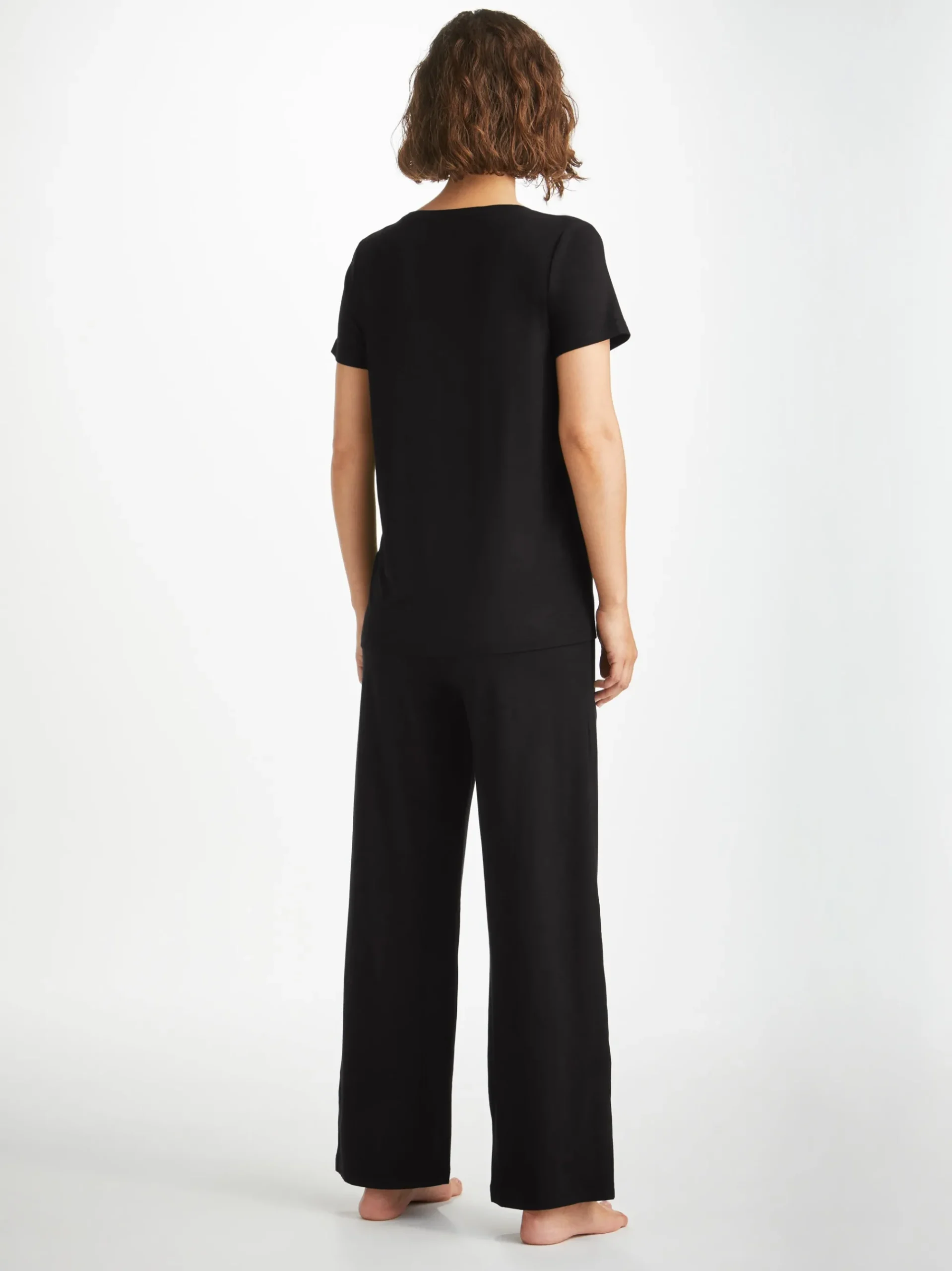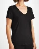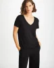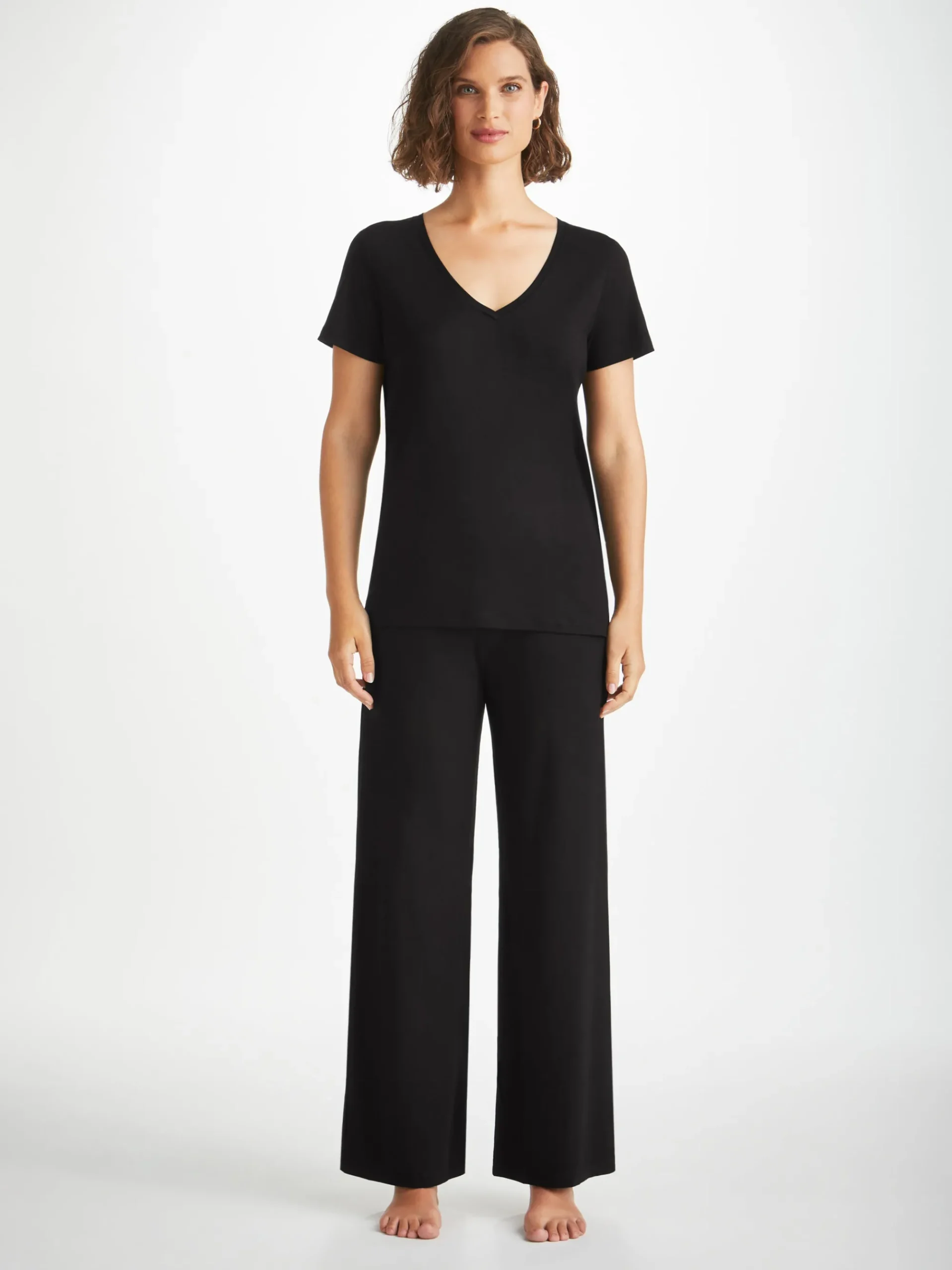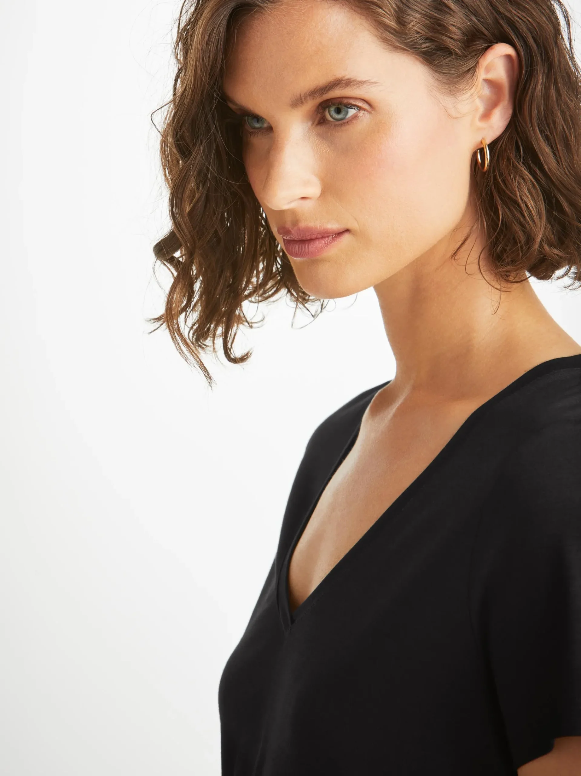 Our Lara t-shirt is a true wardrobe essential and perfect for layering. Seen here in black, it offers a relaxed fit, a soft v-neck and twin needle sleeves and has been designed to sit perfectly underneath all our sweaters and hoodies.
