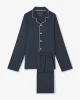 The pyjama top is finished with white piping, a flat open collar and imitation mother-of-pearl buttons, while the trousers feature our self-seeking magnetic fly closure for effortless practicality. Cut in a classic fit, this set is as refined as it is comfortable.