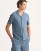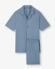 The pyjama top features blue piping, a flat open collar and imitation mother-of-pearl buttons for a refined finish. The matching shorts include a self-seeking magnetic fly for effortless ease, alongside a relaxed cut for comfort.