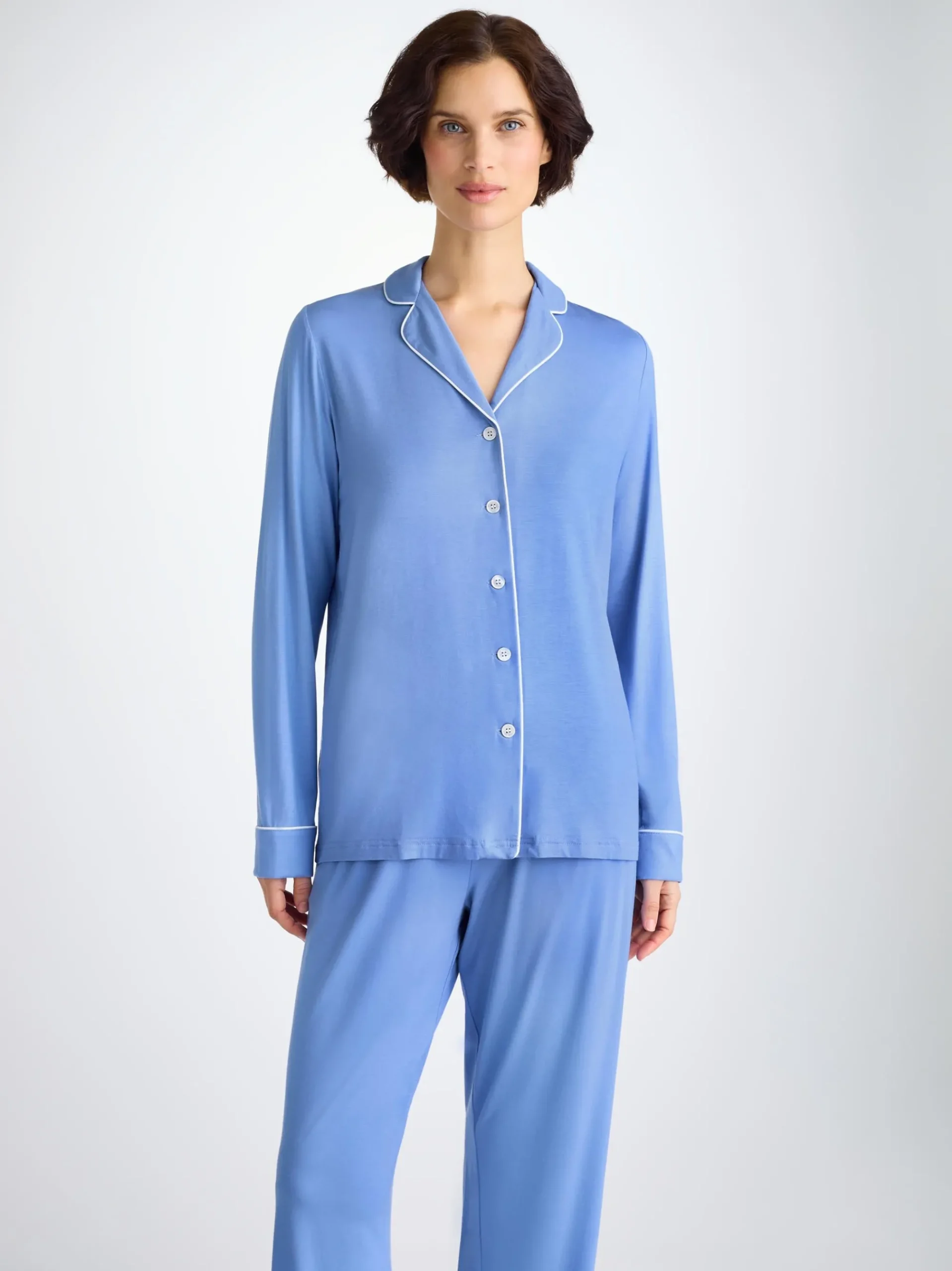 Combining a comfortable and flattering shape with intricate details, our Lara women’s pyjamas in cornflower blue will keep you looking great and feeling comfortable throughout the seasons.