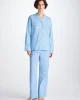 This pyjama features a light blue jungle paisley pattern, subtly woven into the cotton fabric for a lustrous and silky soft touch, making this PJ a dream to lounge or sleep in.