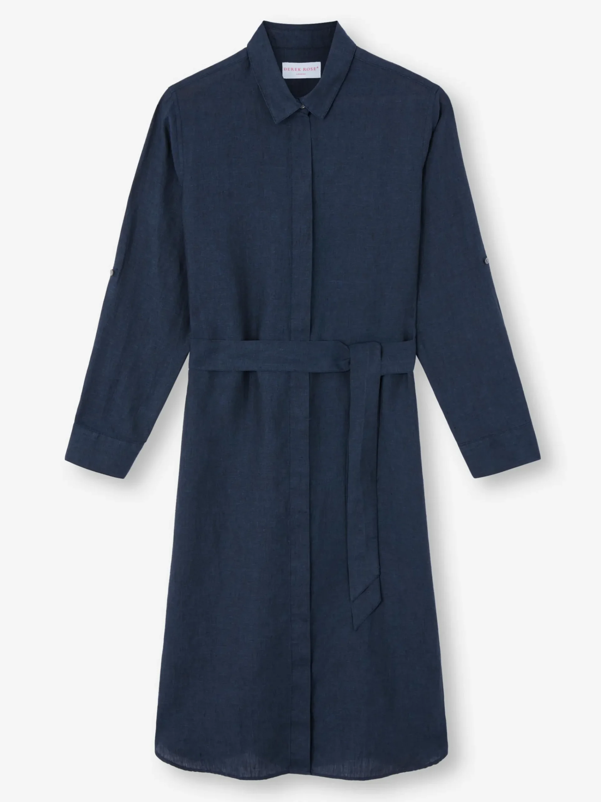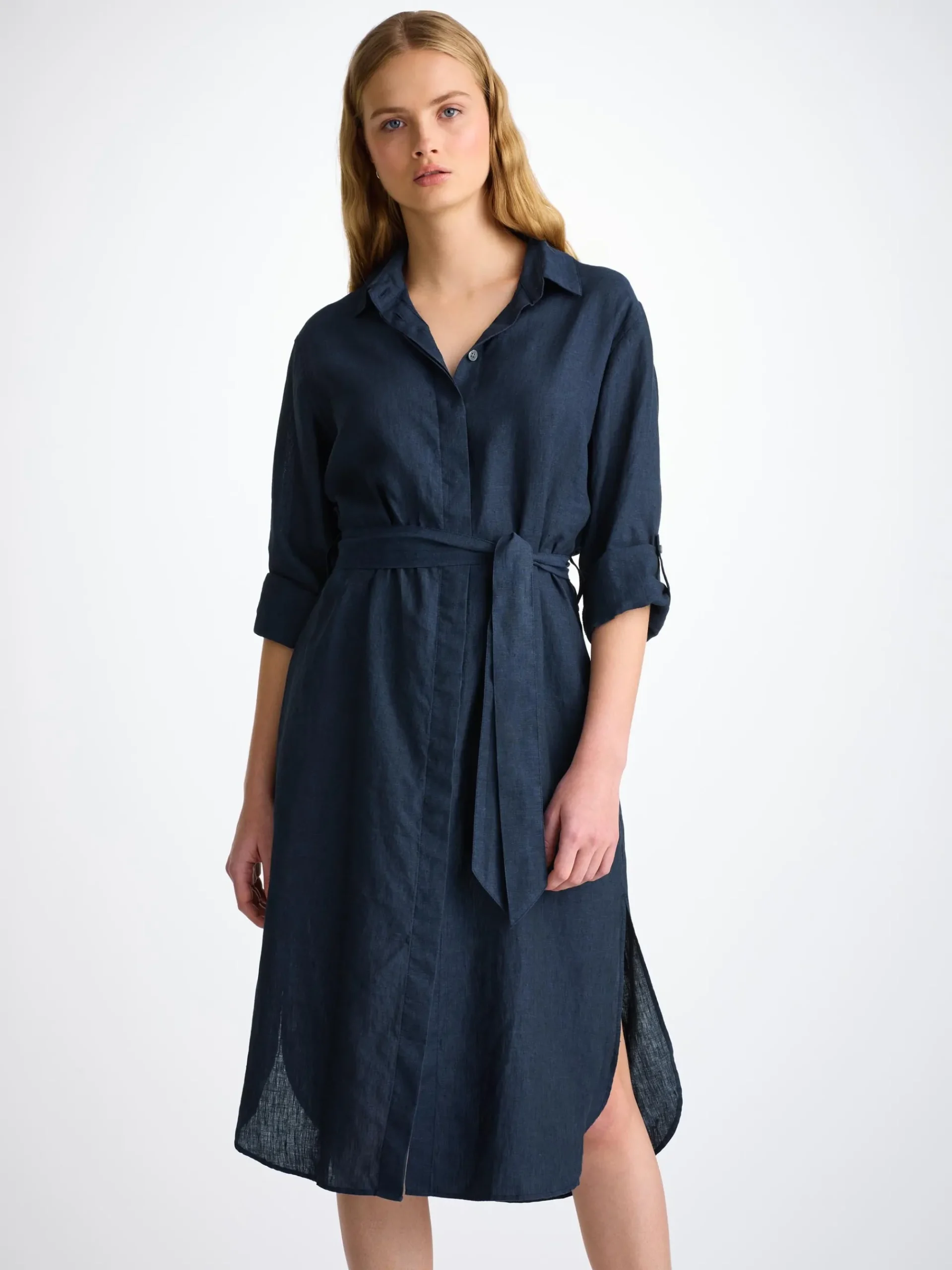 Your new vacation wardrobe essential. Our Sicily navy 100% line dress has been created with natural fibres that gets softer and more durable over time.