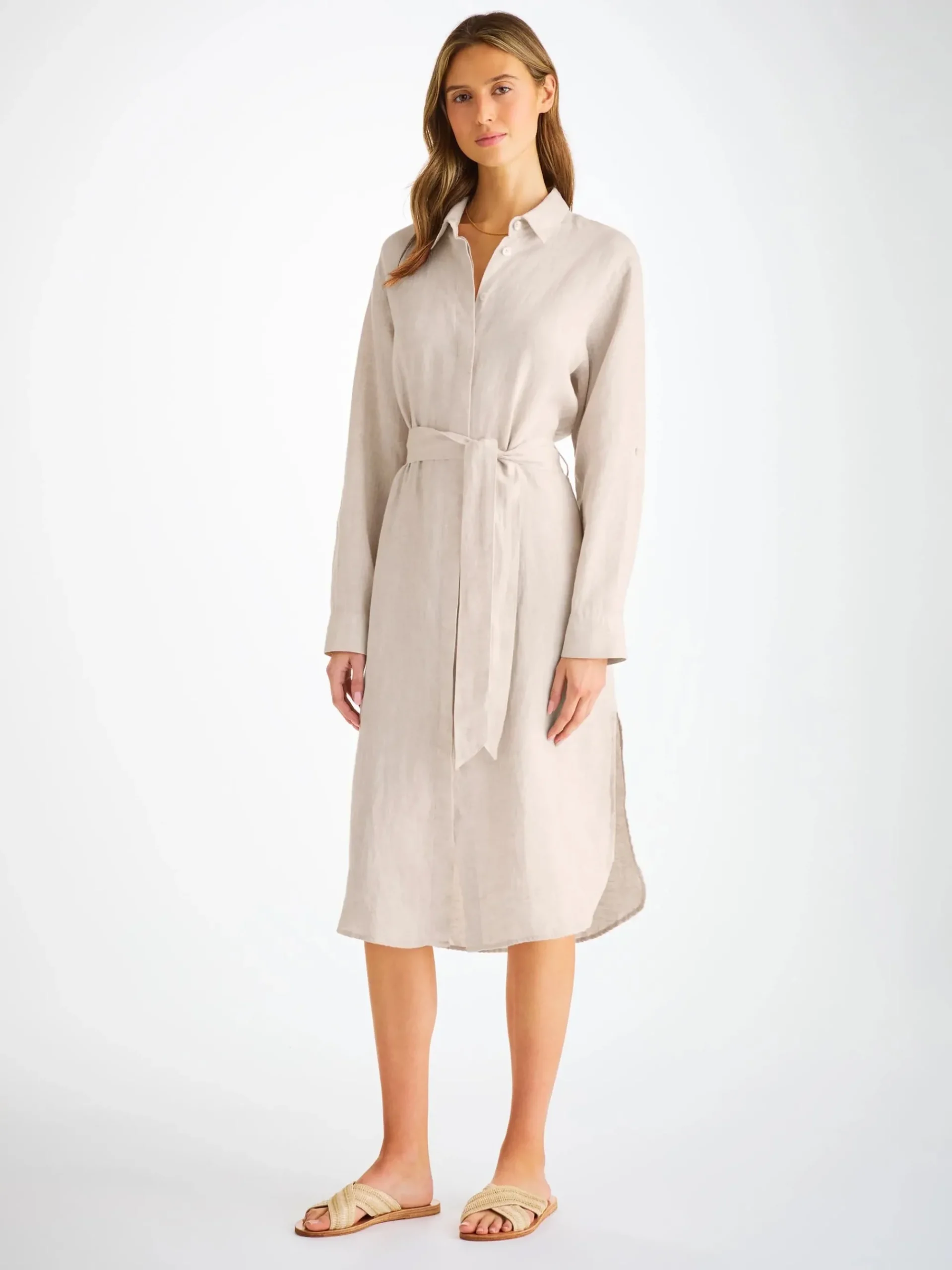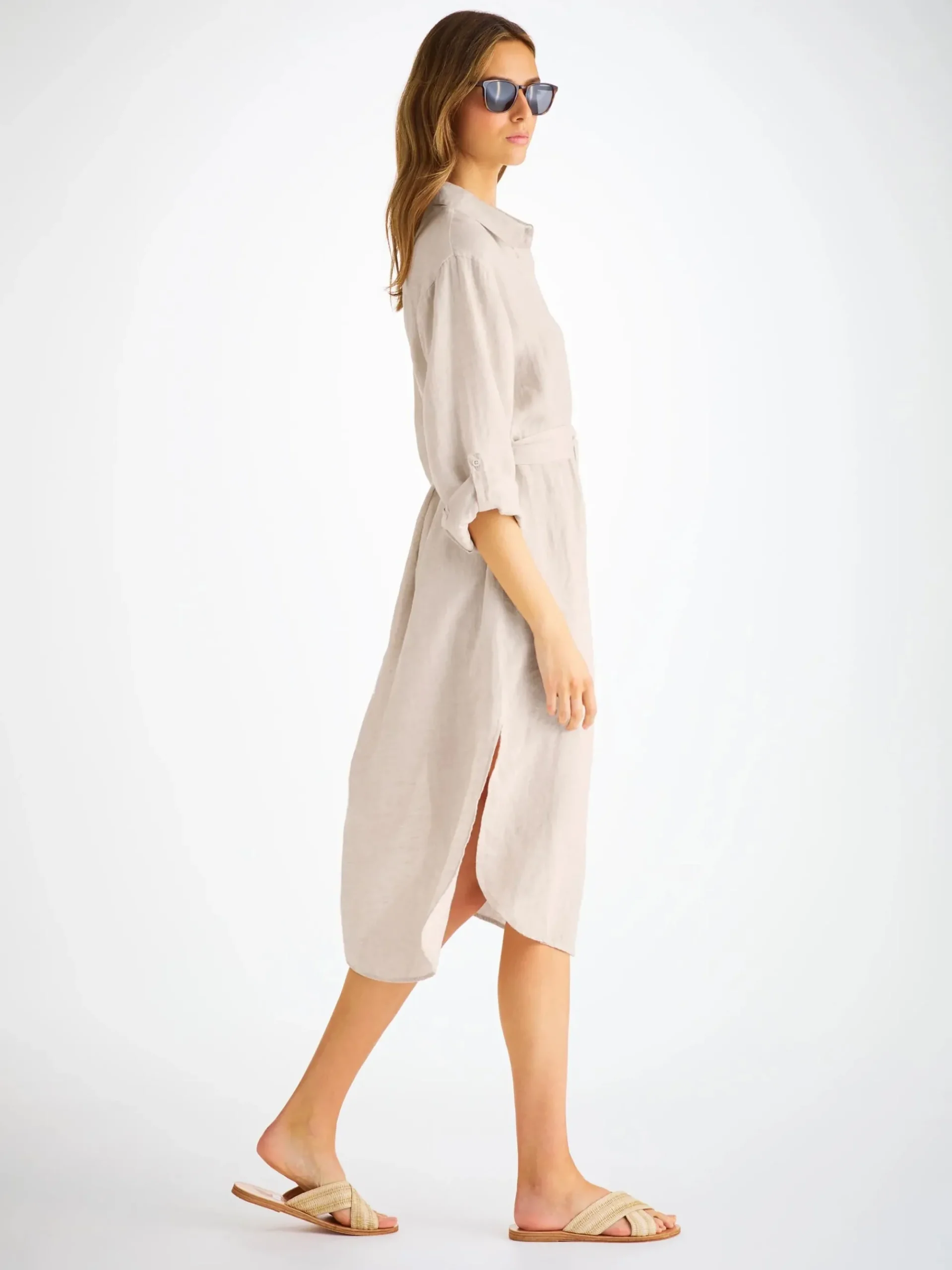 Your new vacation wardrobe essential. Our Sicily sand 100% line dress has been created with natural fibres that gets softer and more durable over time.
