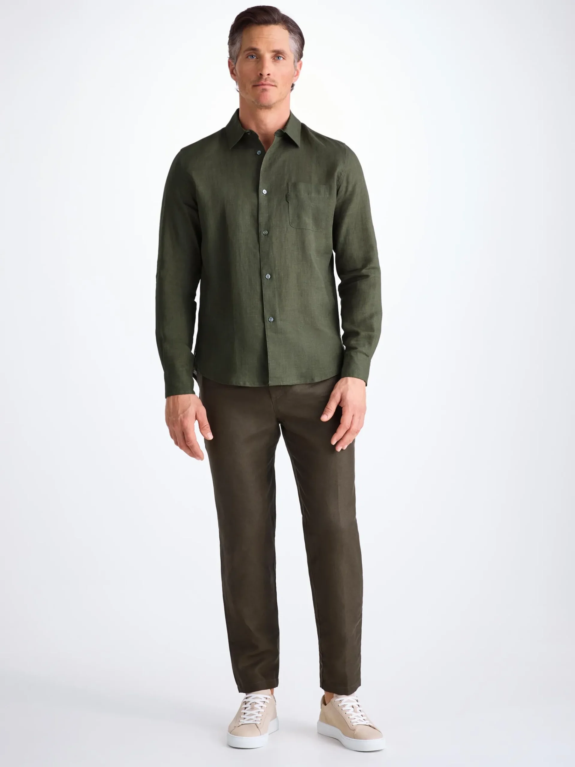 The Monaco shirt in khaki green features a curved back yoke with a box-pleat for comfort and a curved hem with side vents for ease of movement. We’ve used the classic styling of a button-through front and cuffs, a 2-piece collar and for a modern addition, we’ve added a U-shaped breast pocket with a handy sunglass loop for effortless summer chic.