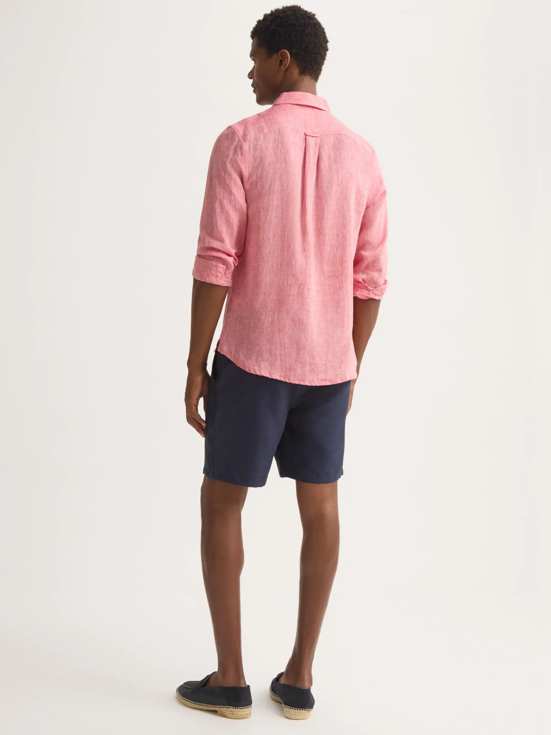 We have developed a mid-weight, beautifully soft and breathable pure linen that will keep you cool and comfortable in even the hottest of conditions. This made in Italy fabric is finished by being piece-dyed before construction for a deep pure navy.