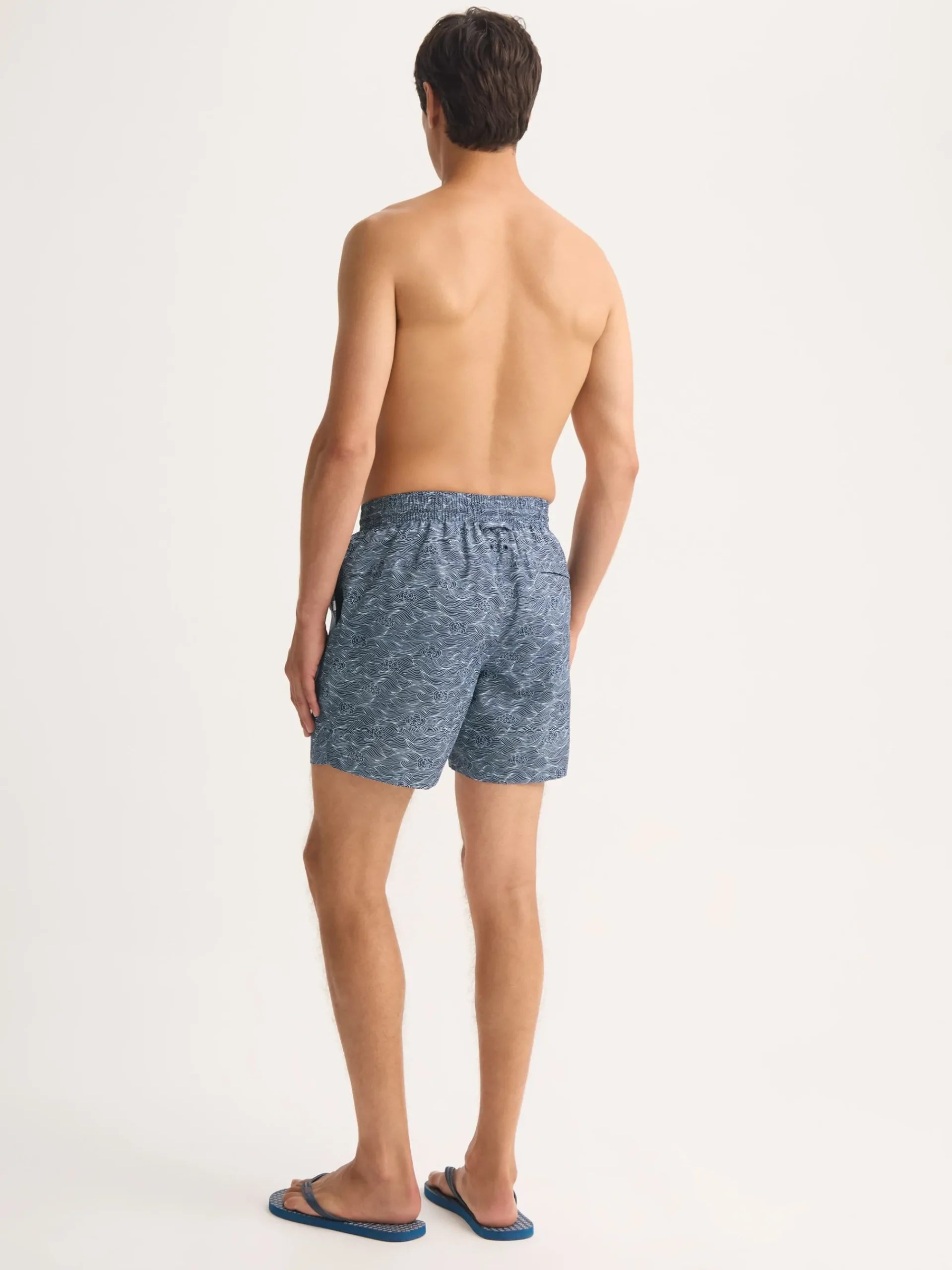 The men’s Maui swim shorts feature a flowing linear print inspired by the night sky, with stylised clouds drifting across a deep navy background. Refined and versatile, they bring a touch of artistry to a swimwear essential.