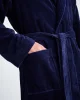 Our Triton bathrobe is a customer favourite, it features a classic shawl collar and two side pockets for practicality while around the house. It’s fastened with a fabric tie belt for the perfect fit.