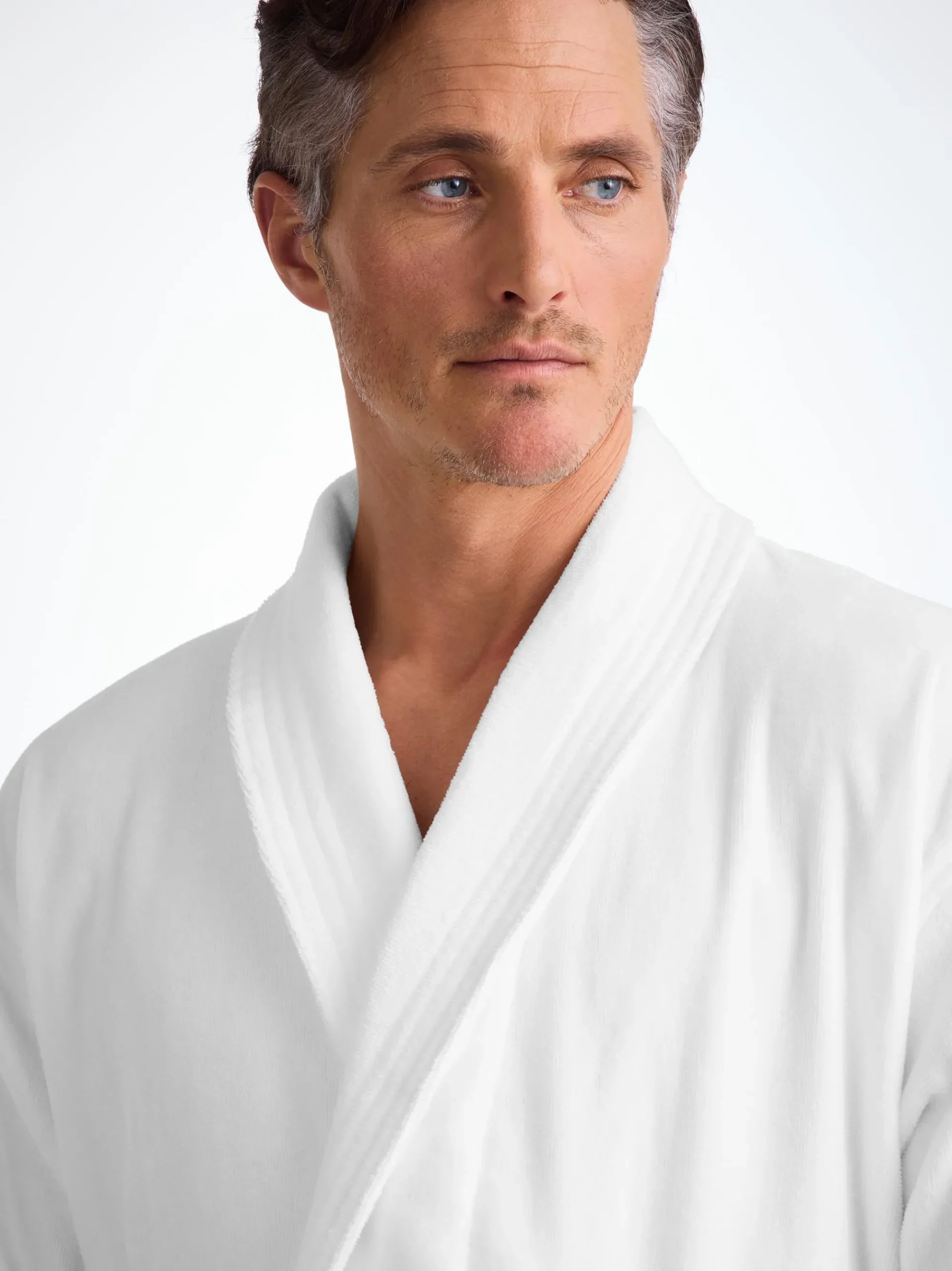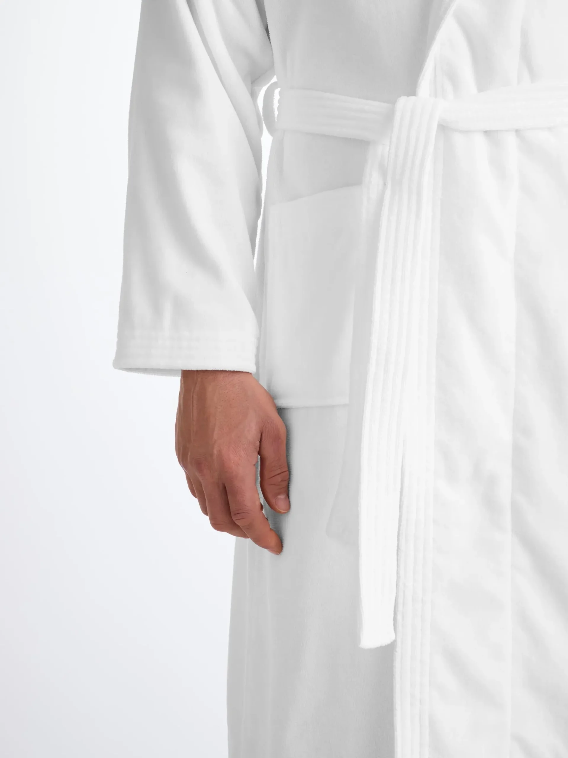 Our Triton bathrobe is a customer favourite, it features a classic shawl collar and two side pockets for practicality while around the house. It’s fastened with a fabric tie belt for the perfect fit.