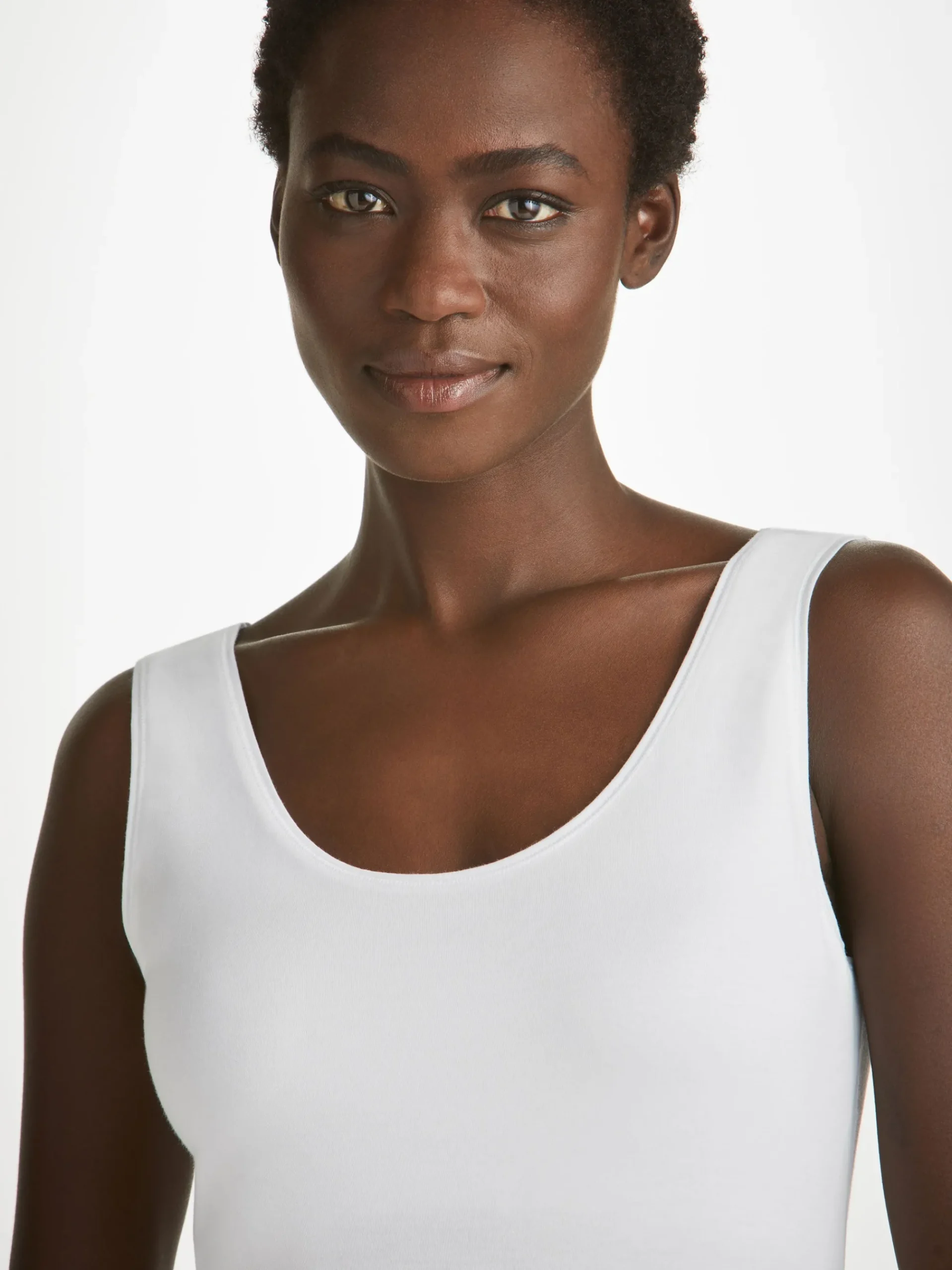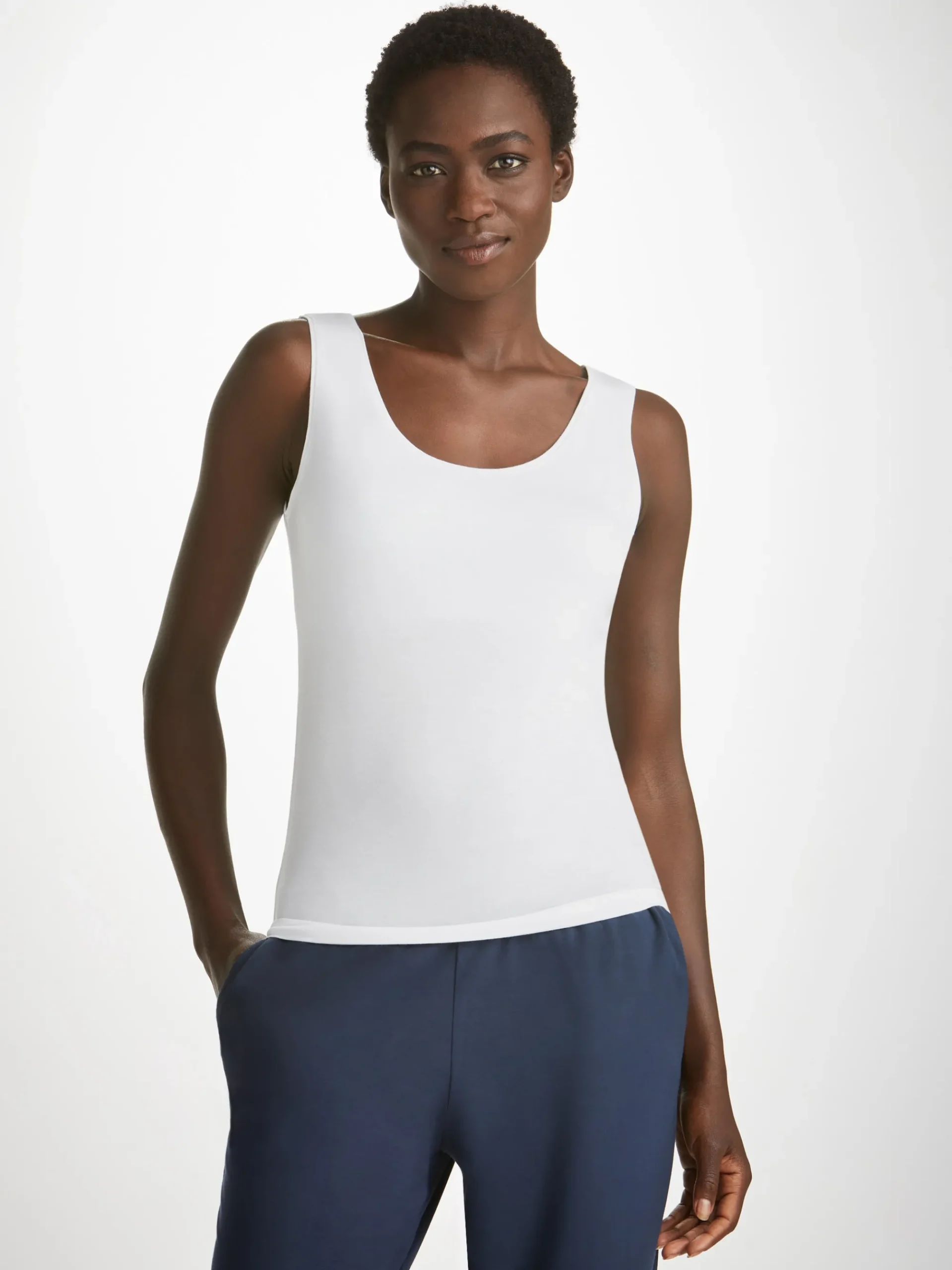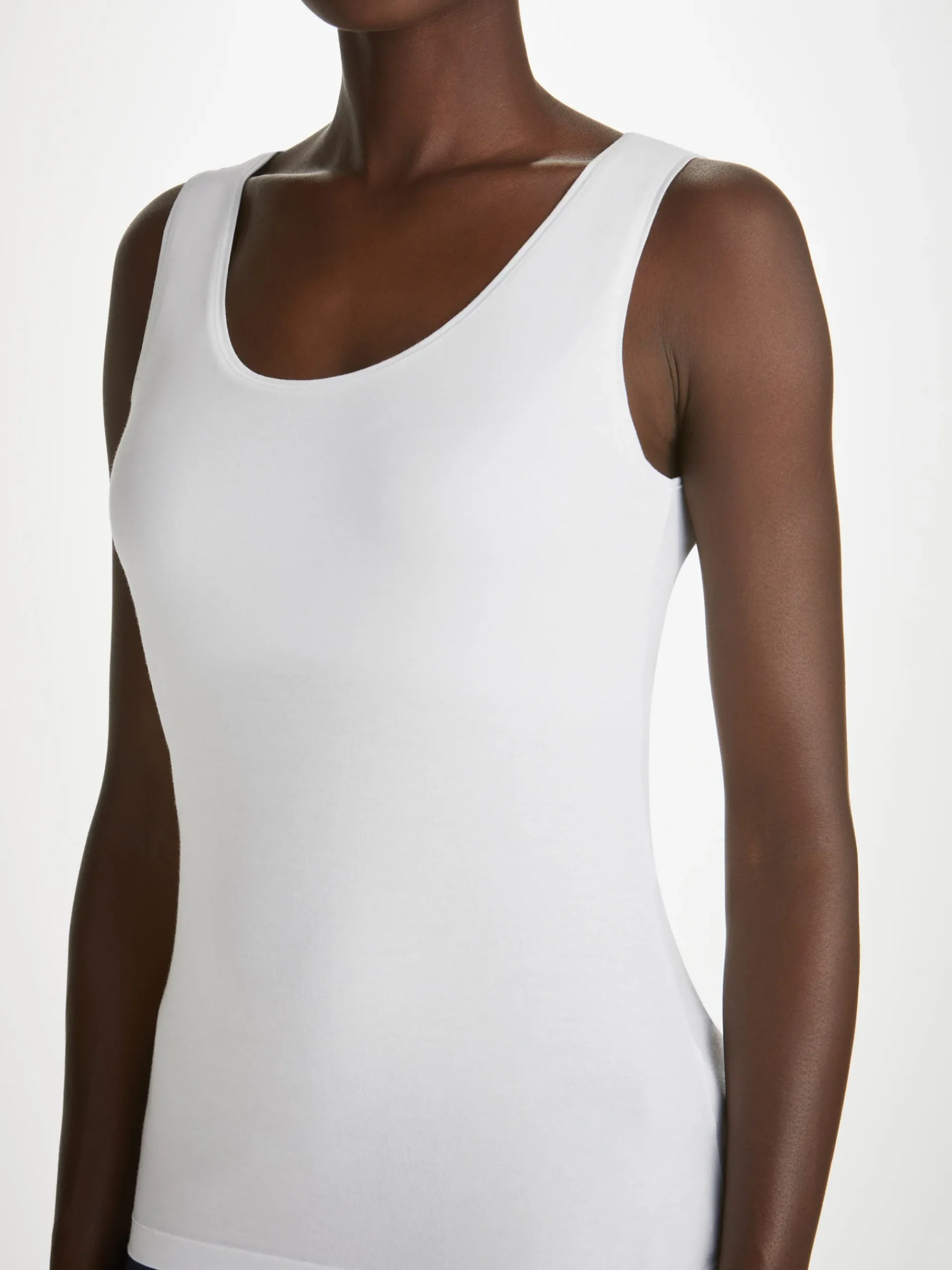 The luxurious finesse of this beautiful fabric is complemented by a scooped neck with soft fabric binding and wide straps for extra comfort. The inner support panel gives this vest a superior fit, allowing it to be worn as a base layer or on its own.