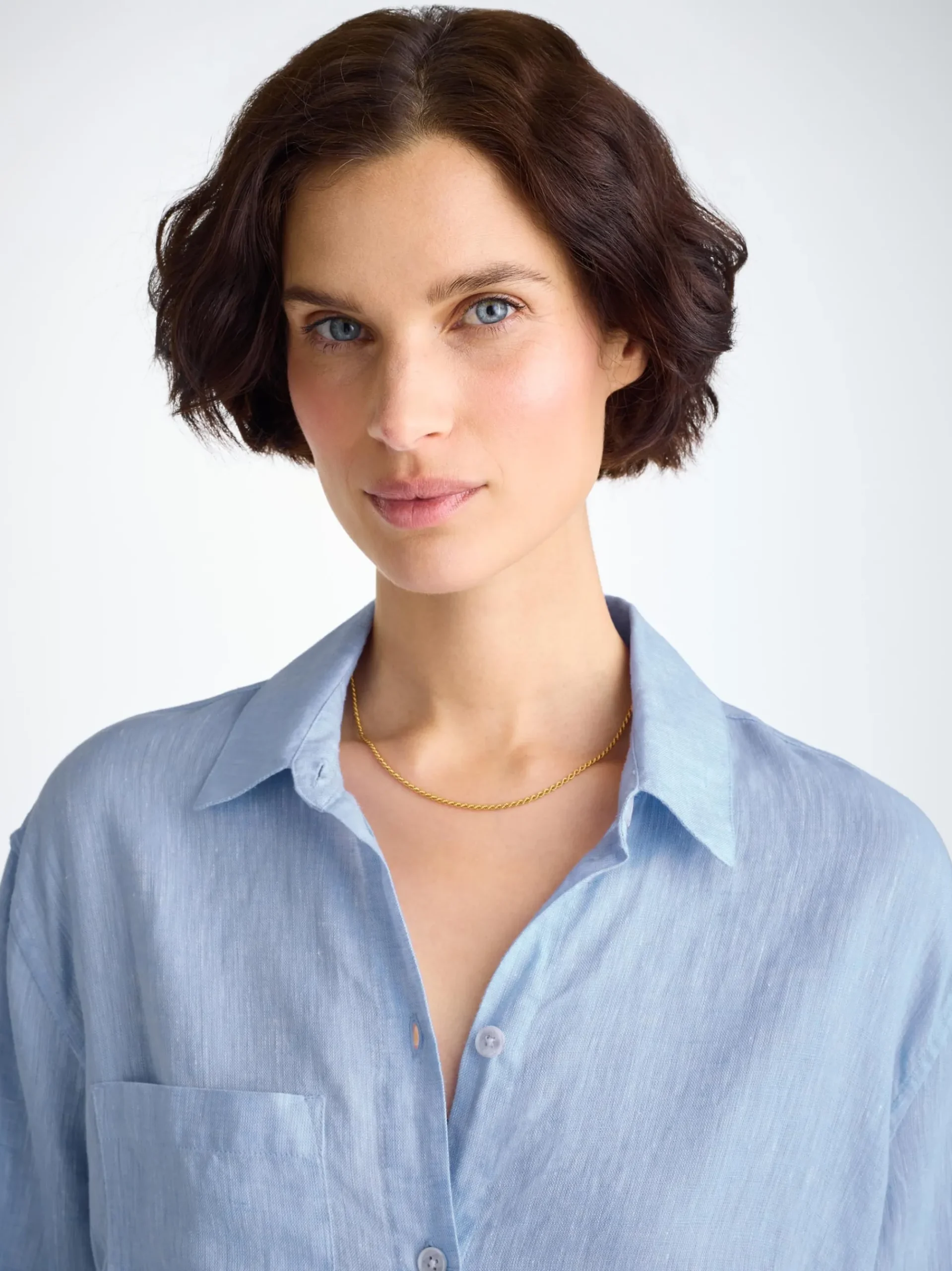 We have developed a beautiful, lighter weight washed linen in a sky blue tone that becomes increasingly soft with wear. The breathable pure linen will keep you cool and comfortable in even the hottest of conditions.