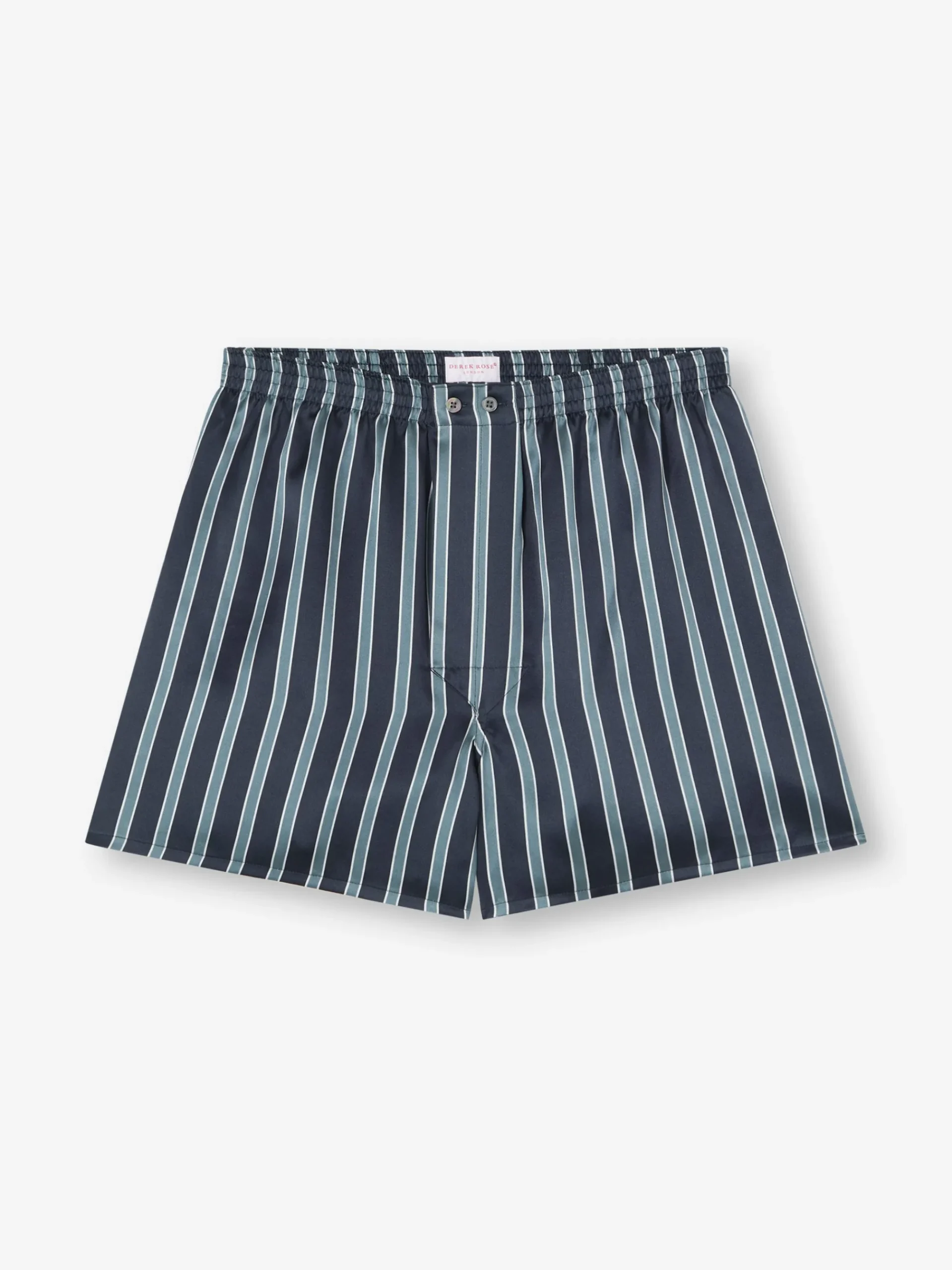 Crafted from our exclusive seasonal silk stripe, these men’s boxer shorts feature classic navy and blue tones for a refined menswear look. Digitally printed in Italy on the finest mulberry silk, the fabric has a smooth silk finish that feels as indulgent as it looks.