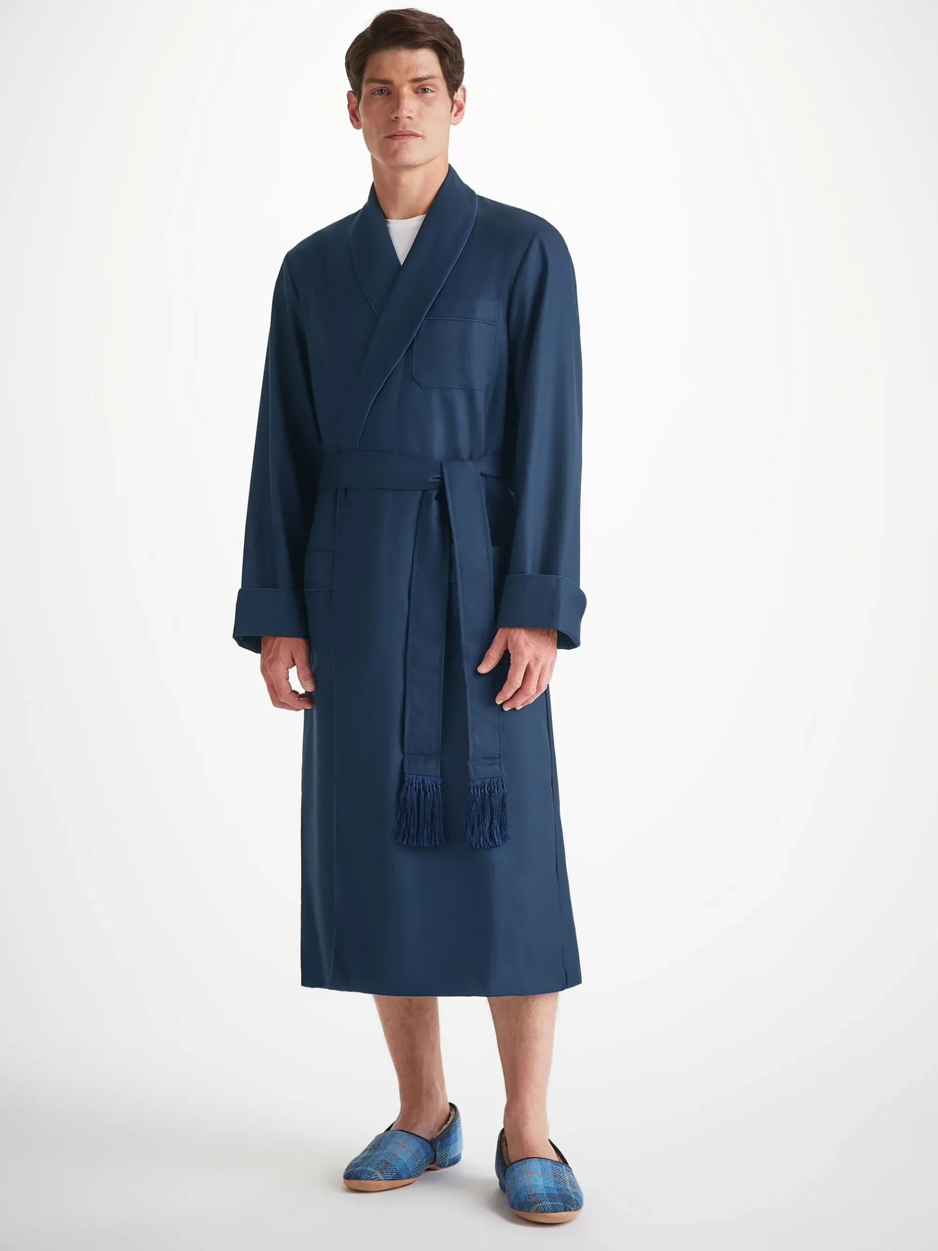 The sole is made from soft suede meaning you can glide around in comfort in the morning without waking the family. The slippers are finished with a navy leather trim for an added touch of luxe.