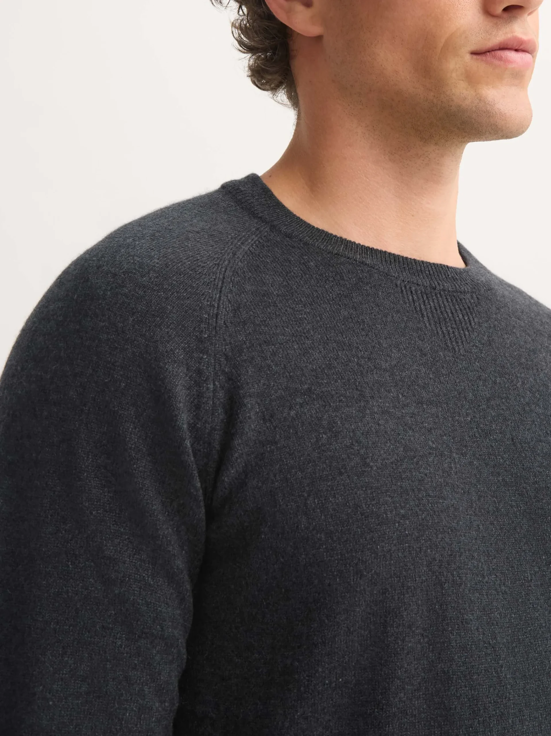 This cashmere charcoal sweater has been designed with ribbed cuffs, hem and collar, as well as raglan sleeves for the perfect fit. Contrast internal ribbing and an integrated ‘V’ detail have been added for a refined finish.