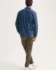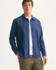 Designed in a regular fit with a minimalist placket, curved hem, and rounded cuffs, this shirt strikes the ideal balance between smart and relaxed. The absence of a collar stand enhances comfort, while the curved back yoke ensures a natural, easy drape. Finished with tonal embroidery and corozo buttons for a sophisticated final touch.