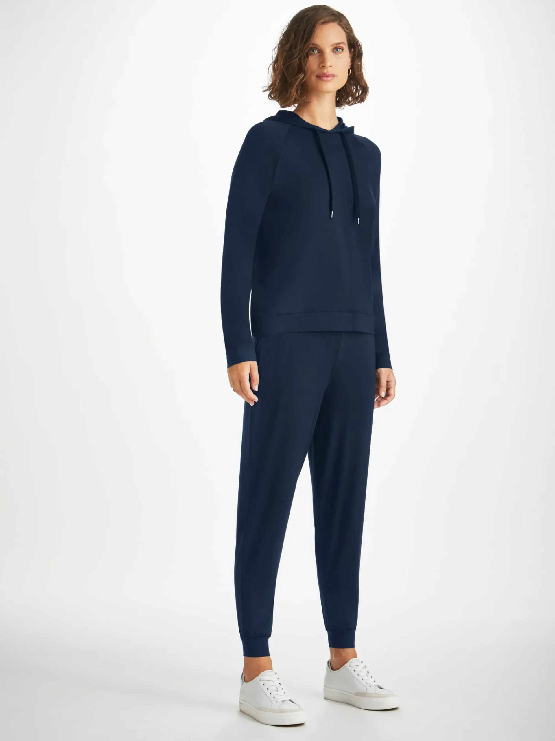 Our Basel fabric in navy has to be touched to be believed. It offers long-lasting softness and doesn’t pill, making it able to withstand countless days of lounging.