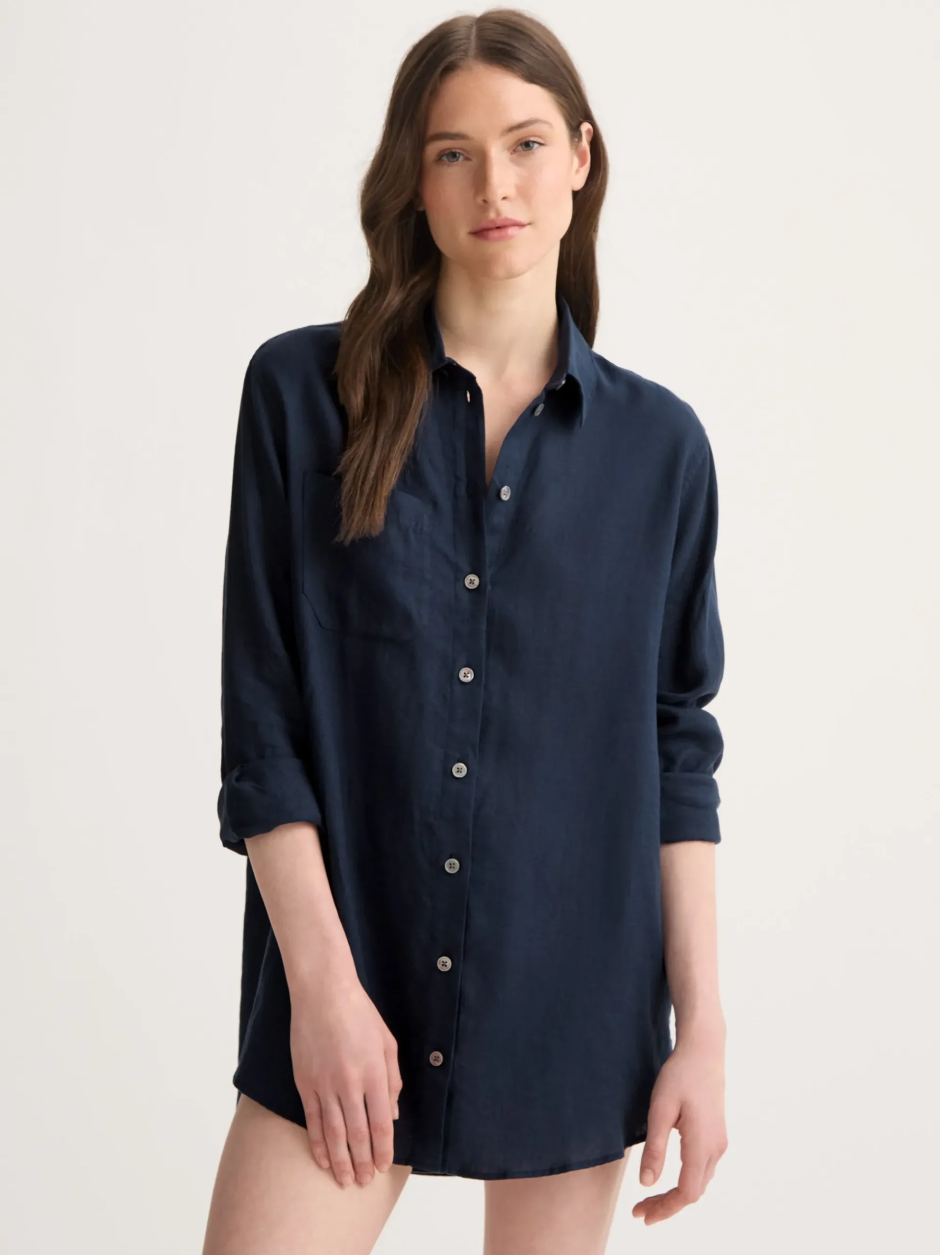 The Sicily shirt features a curved back yoke with a box-pleat for comfort and a curved hem with side vents for ease of movement. We’ve used the classic styling of a button-through front and cuffs, a 2-piece collar and for a modern look, the shirt is designed for an oversized fit for effortless summer chic.