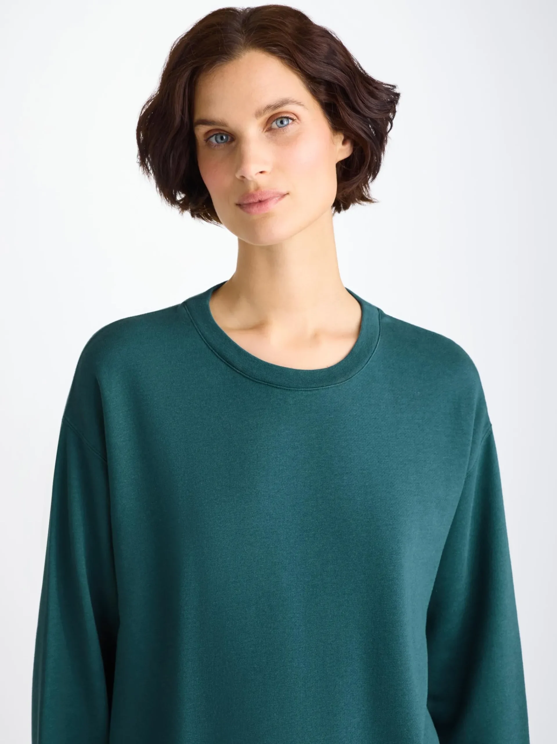 Our Quinn sweatshirt in pine green is stylish, yet practical. Designed for a relaxed, oversized fit with dropped shoulders, ribbed cuffs and neck trim. The sweatshirt will hold its shape – no matter how many days wear it has!