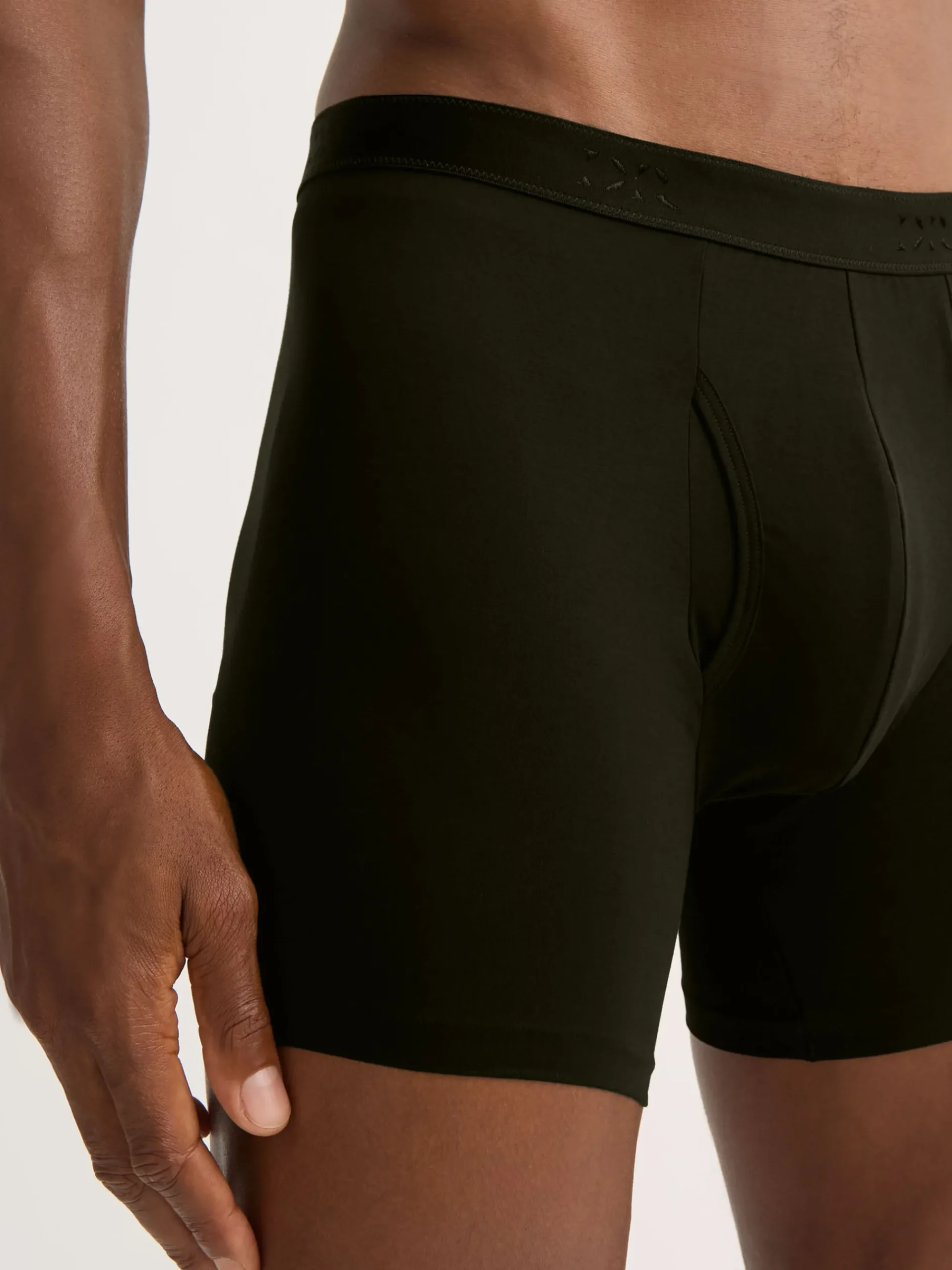Our Jack trunks are cut for a streamlined, classic look with a fitted shape, classic open fly front and a longer leg. A fabric-covered waistband provides gentle skin contact.