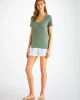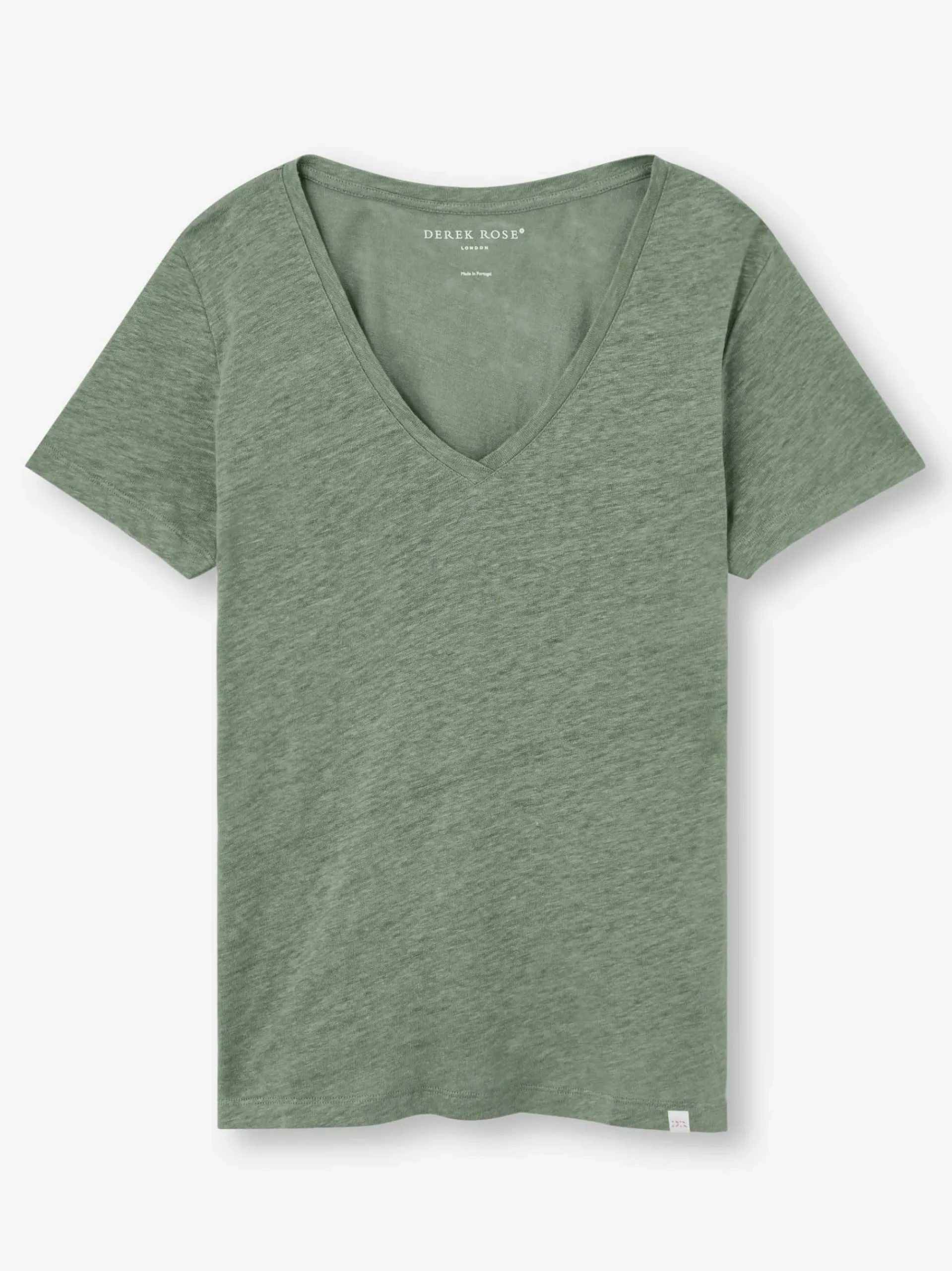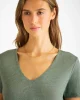 The details have been kept minimal for a clean finish and exceptional comfort. Seen here in sage green, the open v-neck is perfect for relaxed styling.