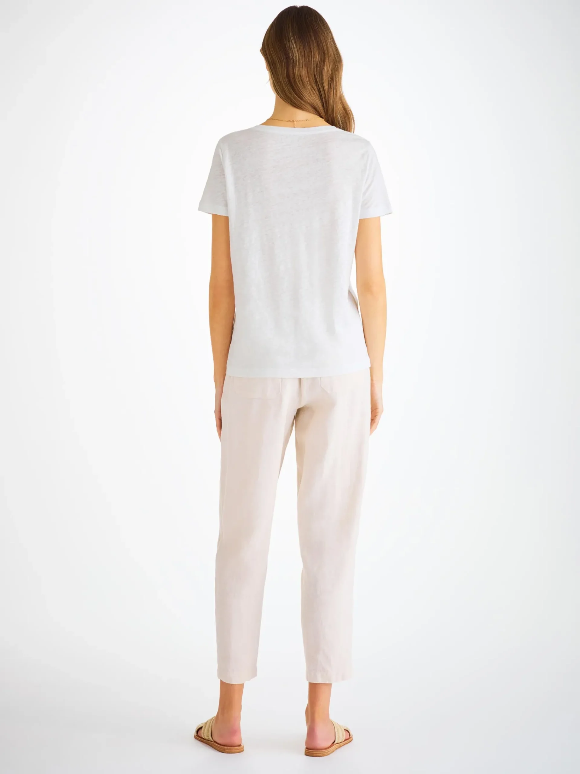 Our women’s Jordan v-neck t-shirt needs to be touched to be believed. Jordan is an exceptionally soft pure linen jersey; this is like no other linen shirt you own. A fabric that typically comes with that rough feeling, our Jordan is cut from a super-soft and lightweight pure linen, knitted with a very fine yarn and finished with a soft wash.