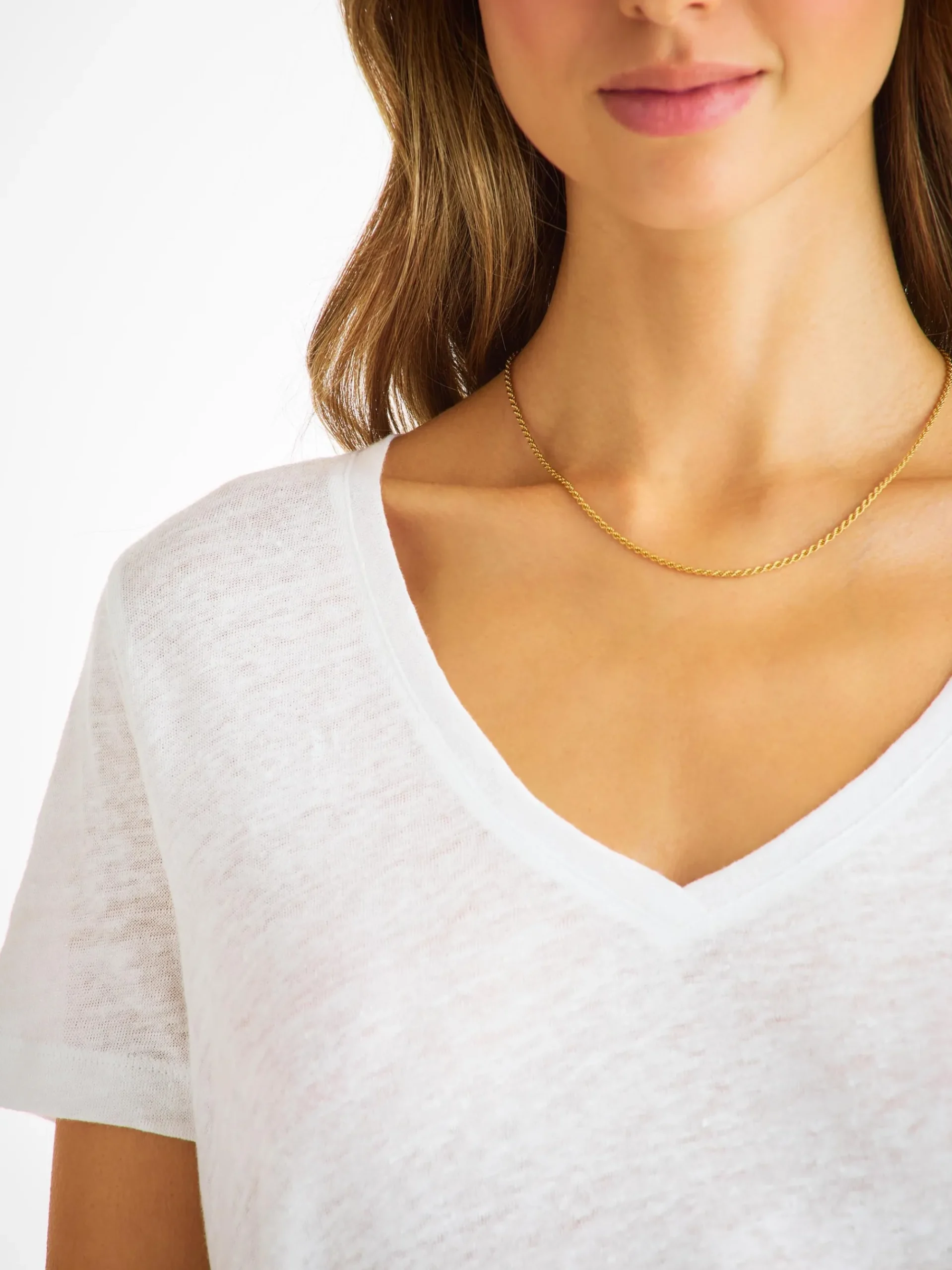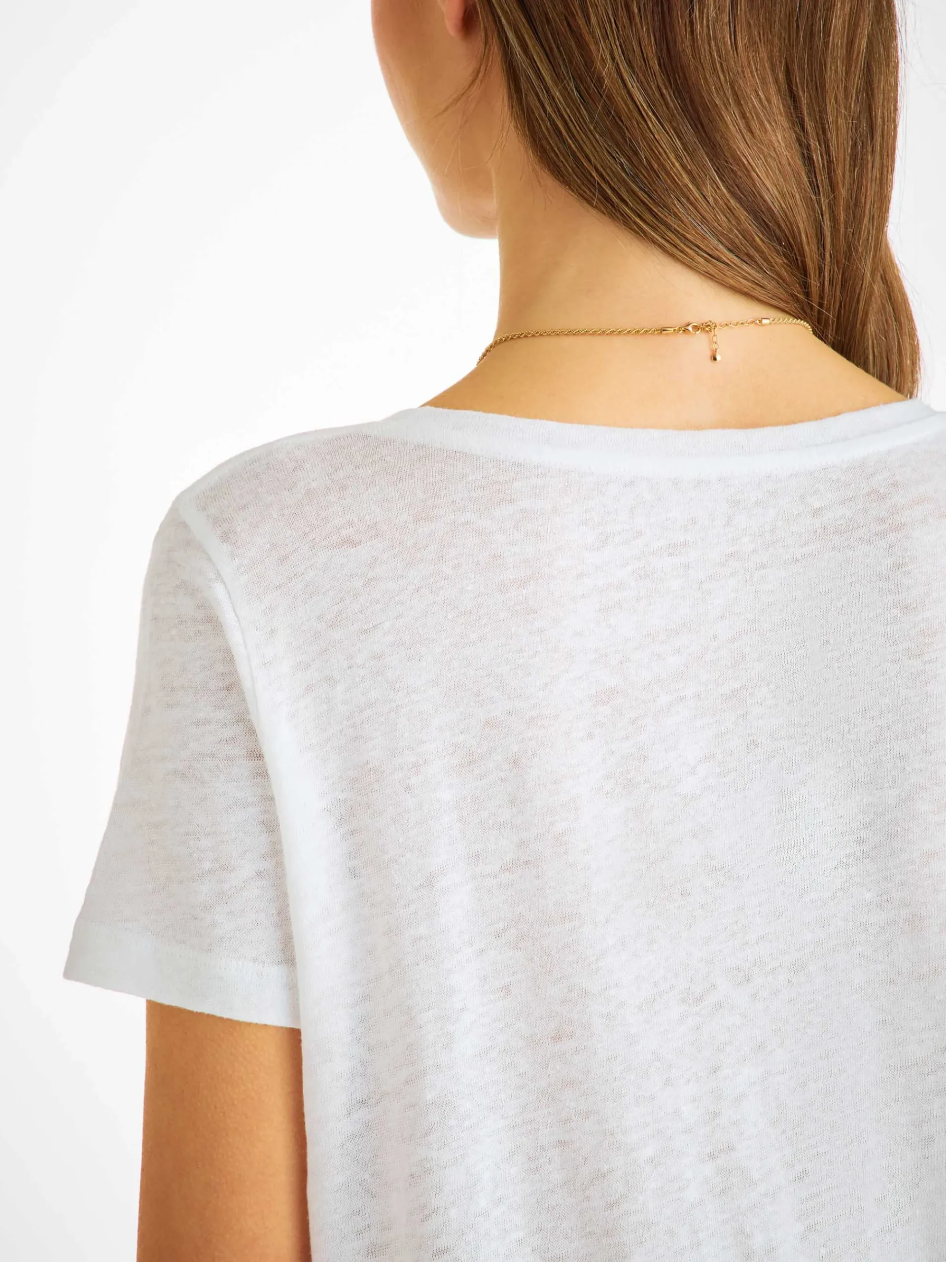 The details have been kept minimal for a clean finish and exceptional comfort. Seen here in white, the open v-neck is perfect for relaxed styling.