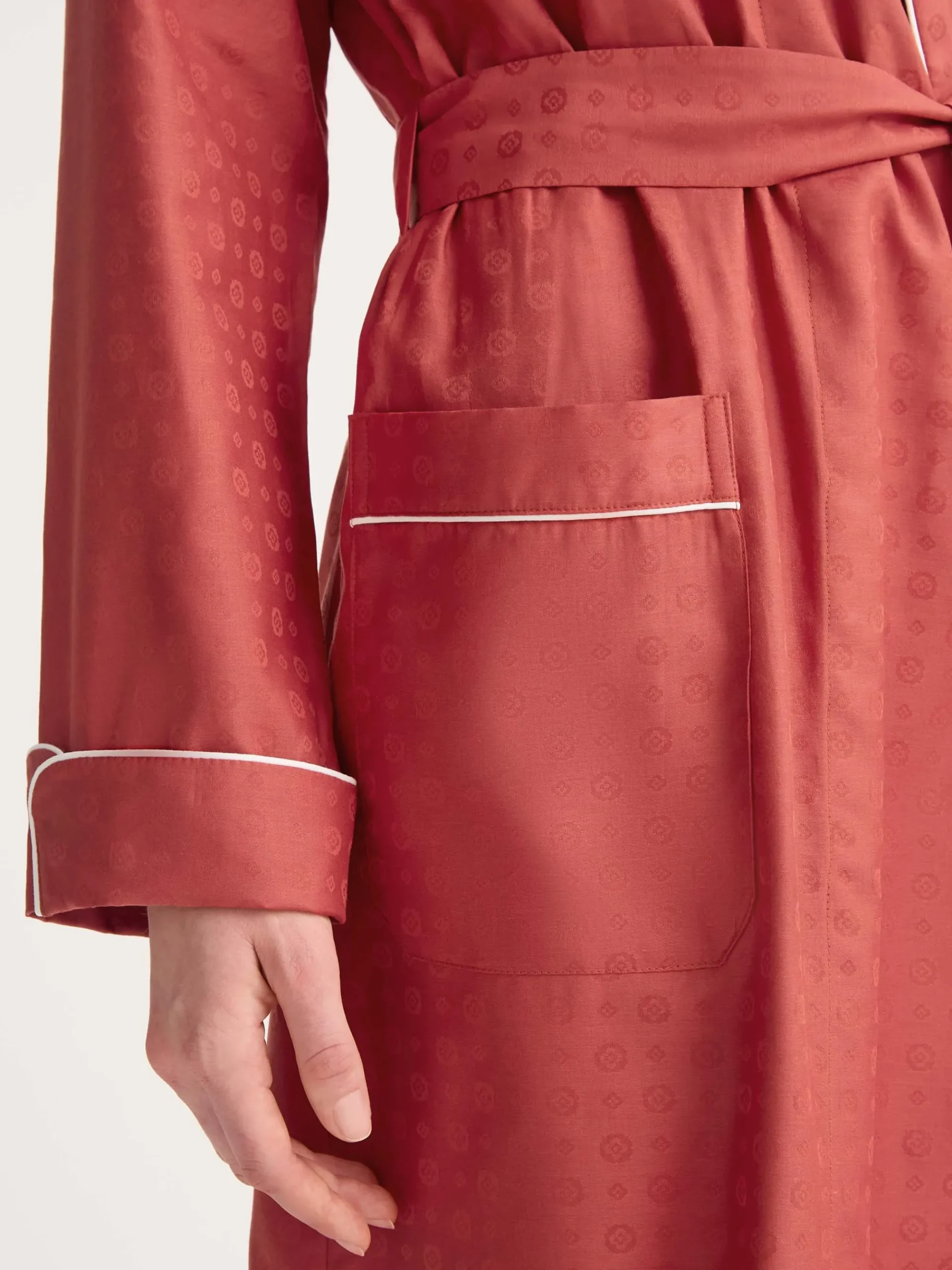 Celebrating 100 years of Derek Rose, this dressing gown features a hand-drawn foulard rose design — a refined tribute to our iconic motif, coloured in timeless red tones.