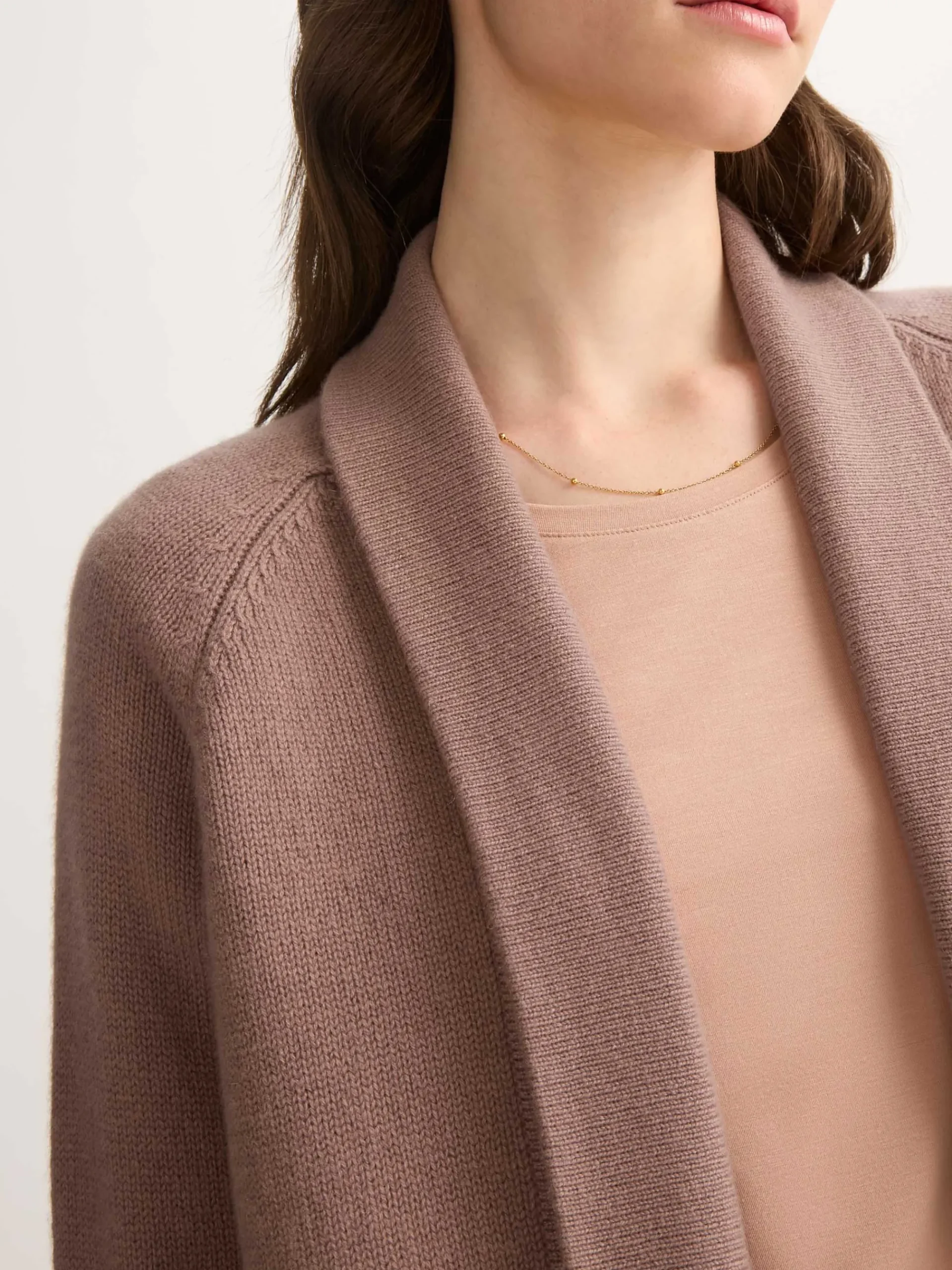 With its ribbed cuffs and hem, the Nina is ideal for layering over your favourite loungewear or as a stylish outerwear piece. This 100% cashmere cardigan also features a shawl collar, stepped hem and patch pockets to keep your hands warm.