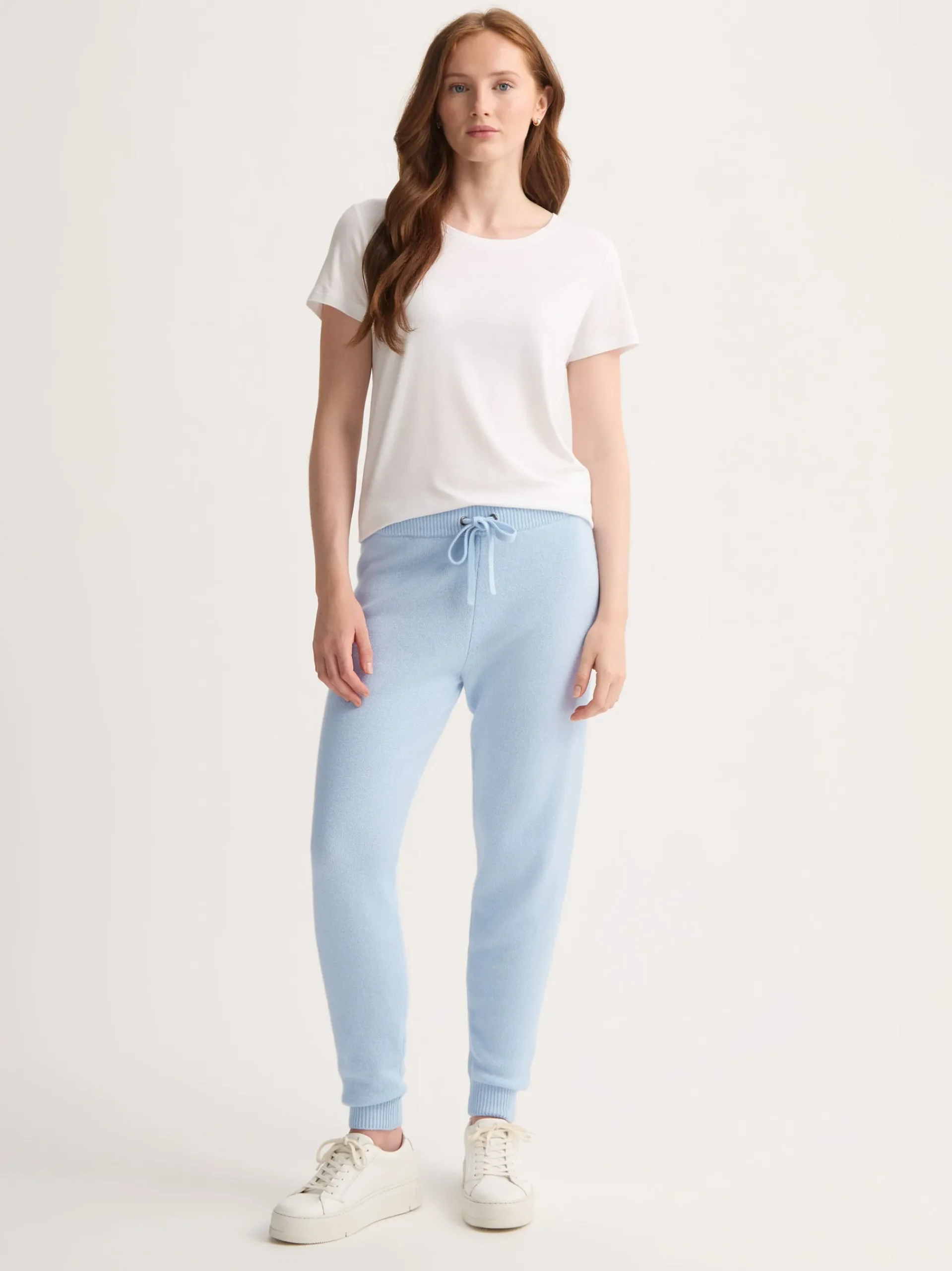 Designed for a flattering yet relaxed silhouette, they feature an elasticated waistband with self-fabric drawstring ties, ribbed ankle cuffs and a gently draped leg for effortless movement. Lightweight and easy to pack, they’re perfect for travel, lounging at home or layering après-ski.