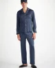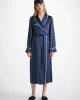 Piped in a complementary navy, the inside is gently padded for a soft and comforting feel, whilst a matching elasticated navy silk strap ensures a secure fit without being constricting on the skin. No more waking up wondering where your mask has disappeared to.r