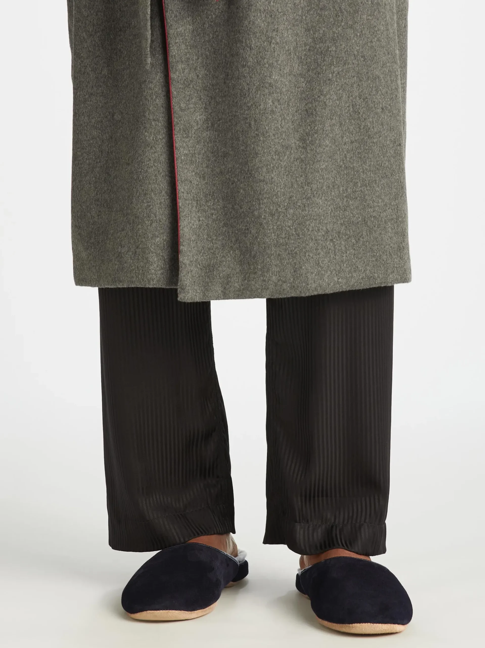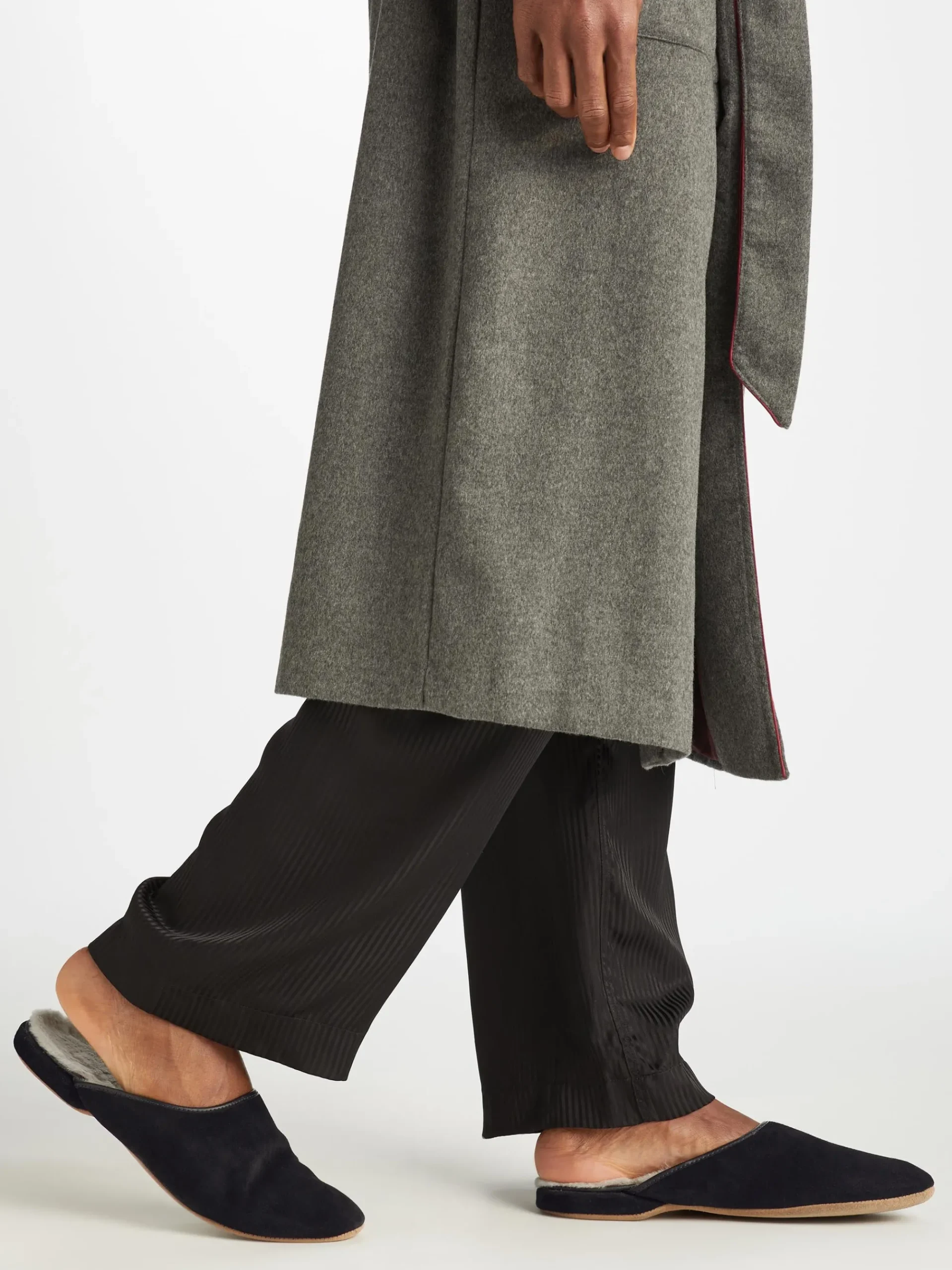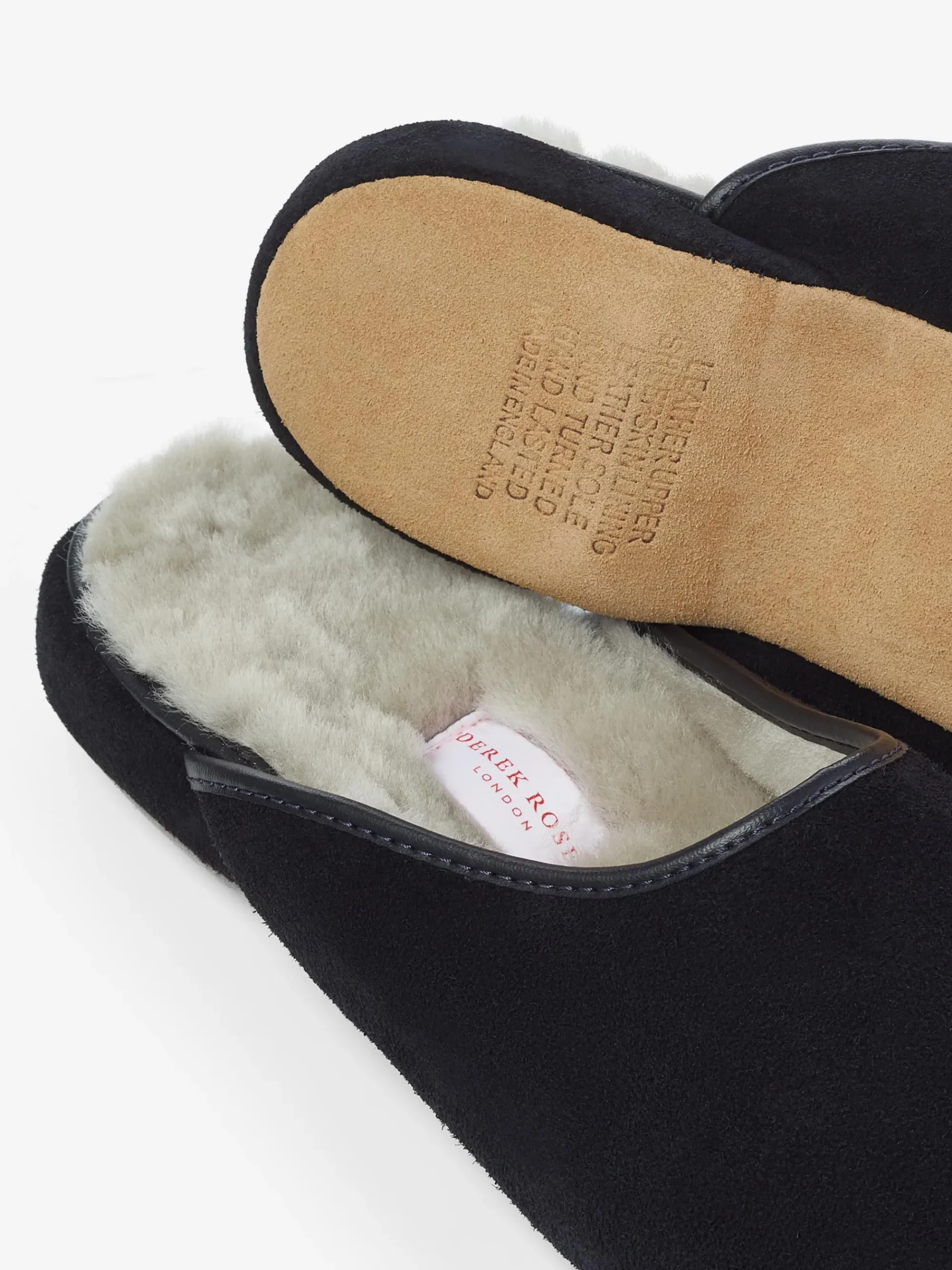 Fusing quality with style, the Douglas black sheepskin slippers are a modern man’s wardrobe essential. The perfect cosy ‘at home’ footwear to pair with your pyjamas or loungewear, for head-to-toe feel-good comfort. We don’t blame you for slipping into these at the end of a hard day’s work or when getting out of bed on a cold winter’s morning.The Douglas features a soft cow suede outer that feels great to the touch. Matching the quality of the outer, the interior features a super soft sheepskin lining and cushioned footbed that your feet will thank you for.The sole is made from soft suede meaning you can glide around in comfort in the morning without waking the family. The slippers are finished with a black leather trim for an added touch of luxe.With over 80 years of experience making sheepskin and leather footwear, our slippers are made at a family-owned workshop in England. Each slipper can take up to 4 weeks to make, using only the finest locally sourced sheepskin and cow suede available.