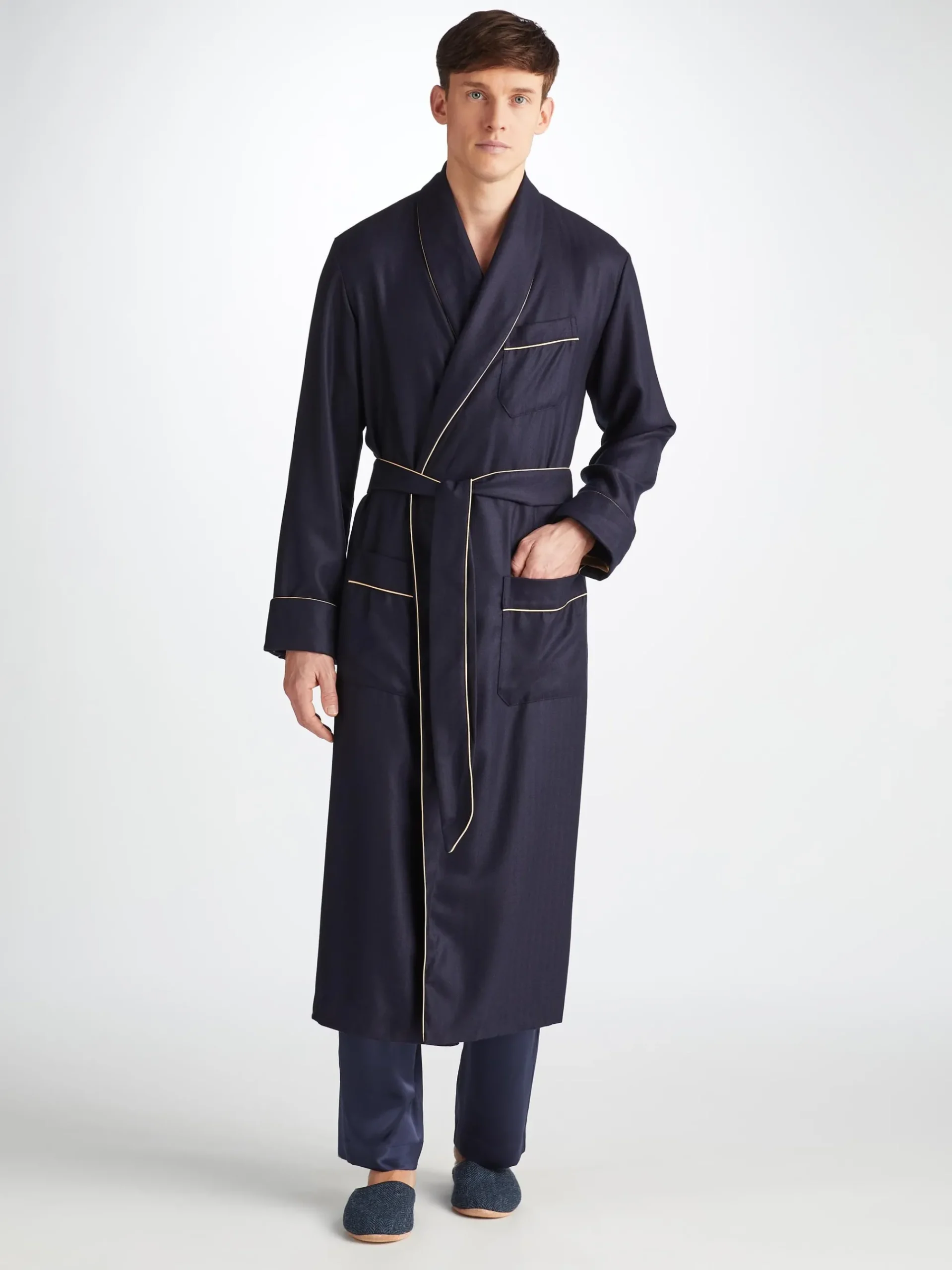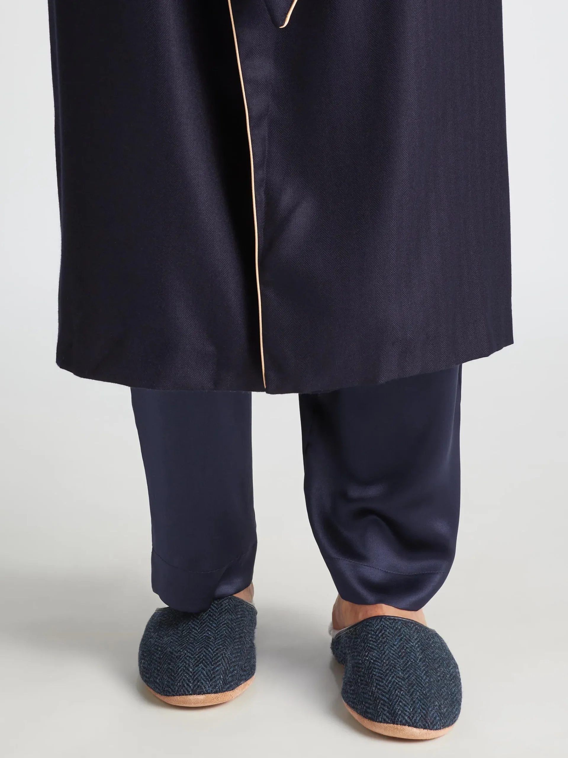 The sole is made from soft suede meaning you can glide around in comfort in the morning without waking the family. The slippers are finished with a navy leather trim for an added touch of luxe.