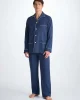 Featuring a three pyjama top, classic collar and adjustable two button traditional fly, this classic fit pyjama has a relaxed cut and elasticated sides on the trousers, meaning the front and back are flat for your comfort. Furthermore, the rest of the jacket is piped throughout with a complementary white piping.